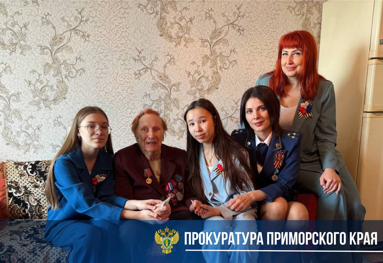 Прокурор Первореченского района города Владивостока Ксения Кравченко совместно с воспитанниками детского дома № 2 г. Владивостока посетила тружеников тыла Розу Ивановну Кременецкую и Галину Тимофеевну Крыжановскую.