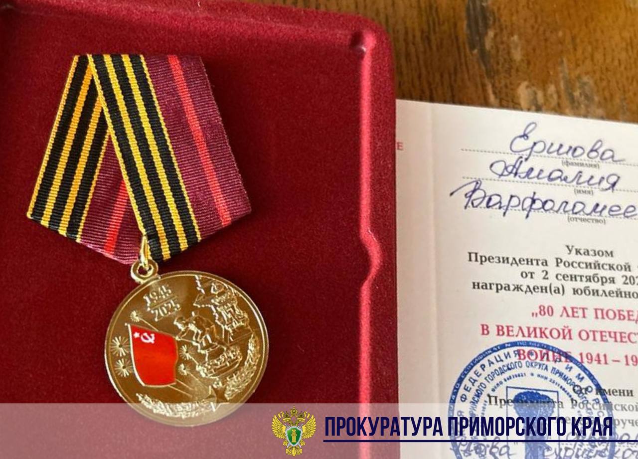 В Уссурийске прокуроры посетили 99-летнюю труженицу тыла