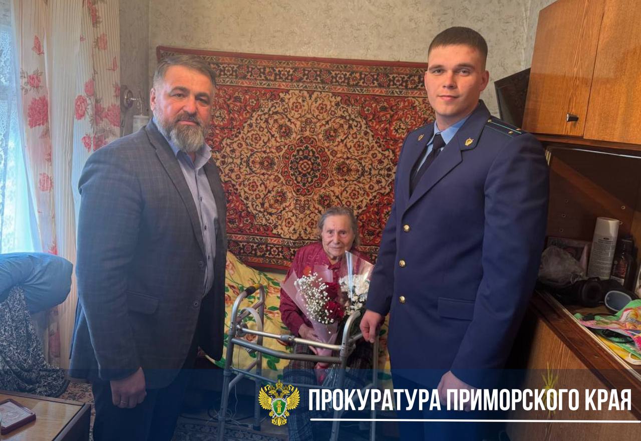 По поручению прокурора края Сергея Столярова сотрудники прокуратуры Кировского района посетили труженицу тыла Великой Отечественной войны Нину Ивановну Терещенко, которой сегодня исполнилось 97 лет.