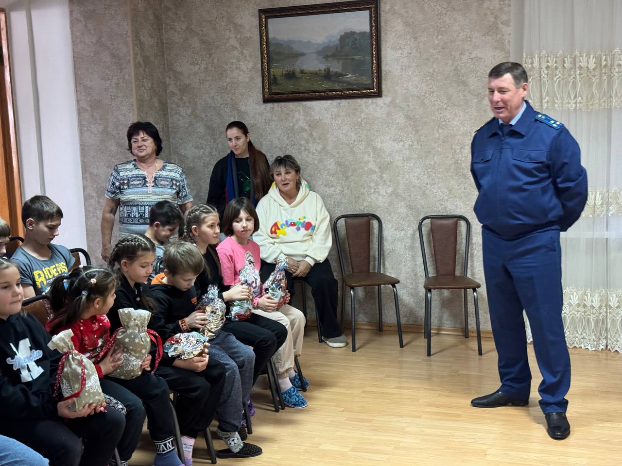 В преддверии новогодних праздников прокурор Шпаковского района Сергей Степанов встретился с воспитанниками государственного казенного учреждения для детей-сирот и детей, оставшихся без попечения родителей, «Детский дом (смешанный) № 13» в селе Надежда.Представитель надзорного ведомства обратился к ребятам с поздравлениями и пожелал им здоровья, успехов в учебе, усердия и высоких достижений, а также передал сюрпризы и сладости, которые помогли создать для детей атмосферу настоящего новогоднего чуда.