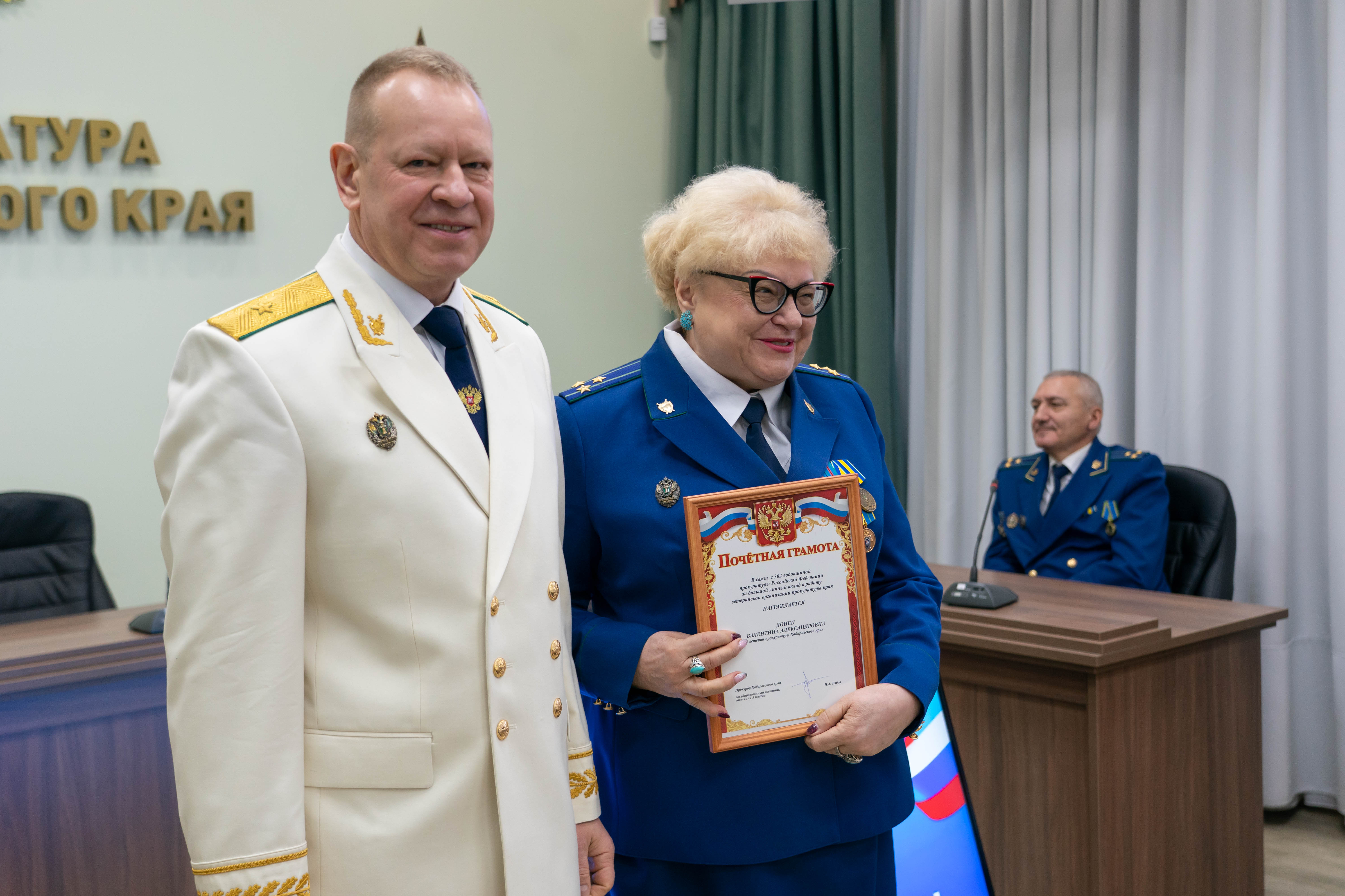 Также прокурором края вручены почетные грамоты ветеранам прокуратуры Валентине Донец и Валентине Жулановой за личный вклад в работу ветеранской организации и правовое воспитание молодежи.