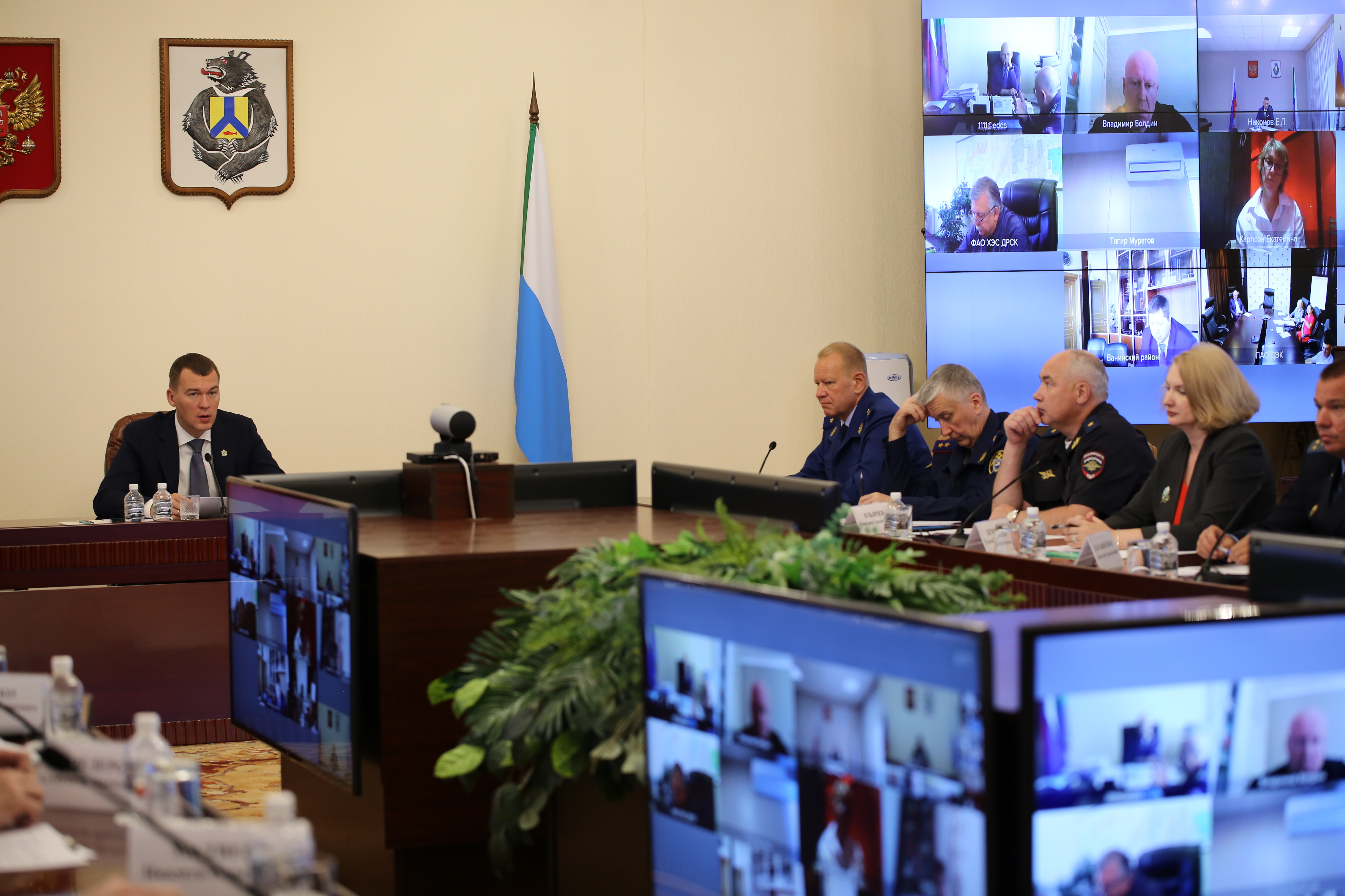 09.09.2022 прокурор Хабаровского края Николай Рябов выступил с докладом на межведомственном совещании по вопросу погашения долгов по оплате труда в Хабаровском крае, проводимом Губернатором региона Михаилом Дегтяревым.