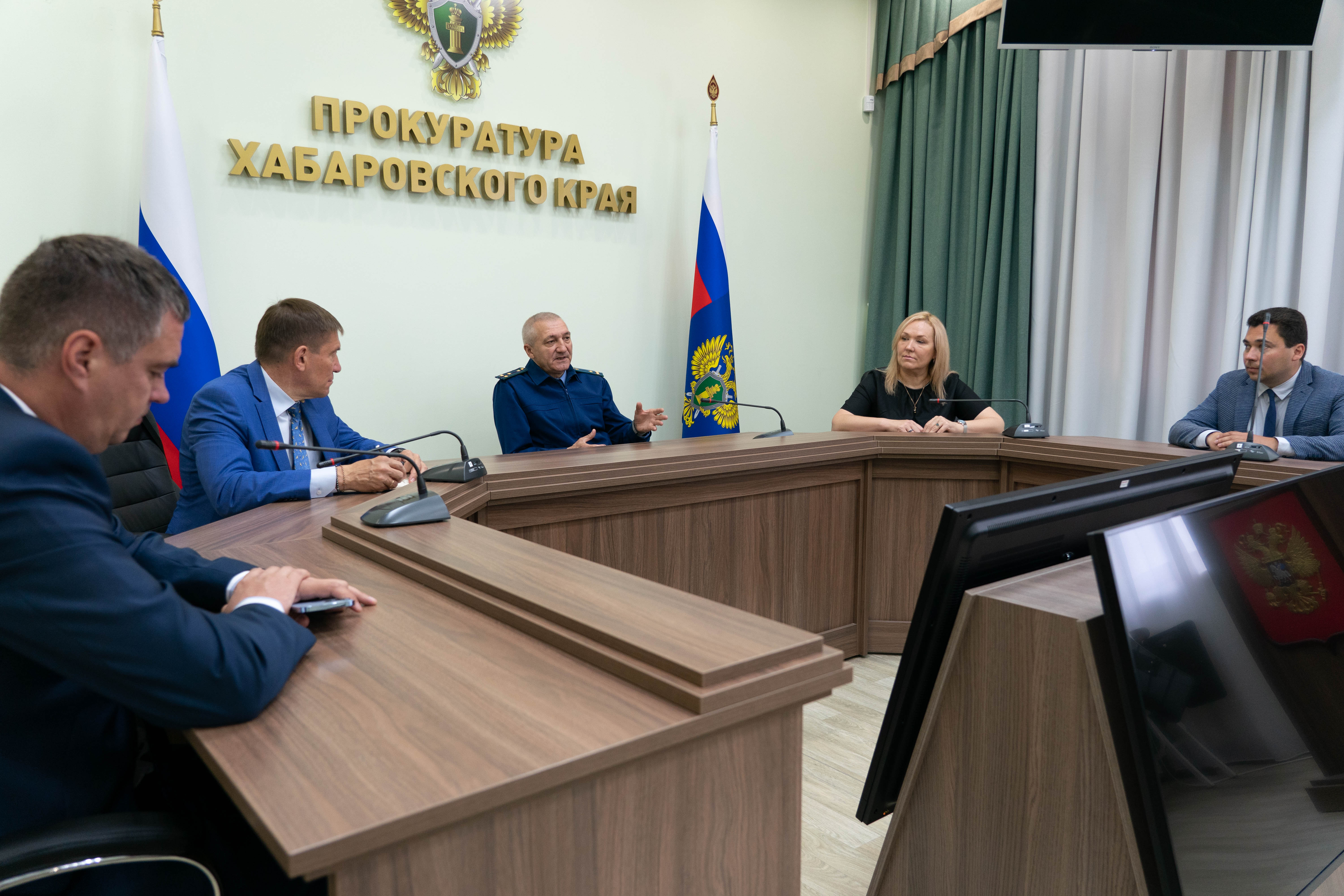Сегодня заместитель прокурора Хабаровского края Сергей Аксаментов провел рабочую встречу с председателем Комиссии Общественной палаты Российской Федерации по безопасности и взаимодействию с общественными наблюдательными комиссиями Александром Воронцовым.