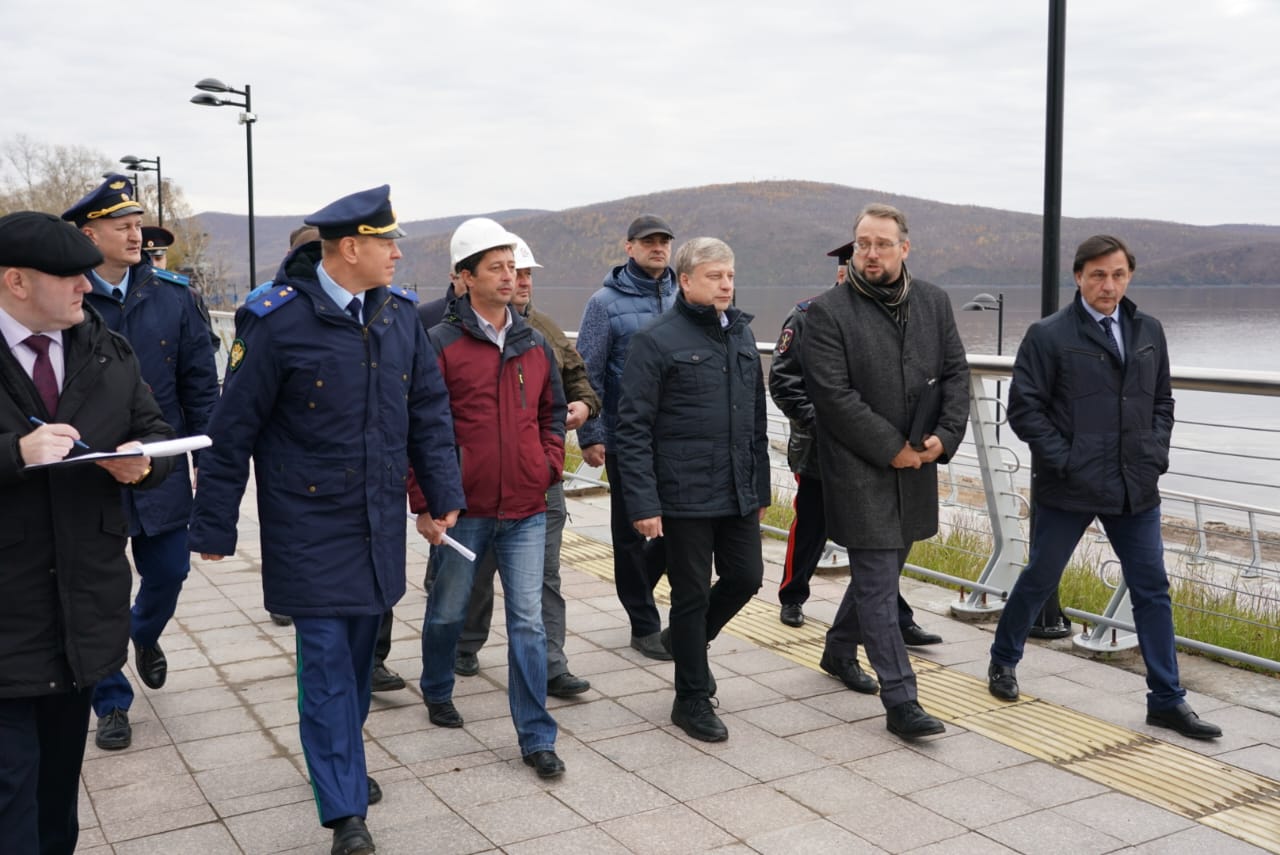 Совместно с начальником УФСБ России по Хабаровскому краю Максимом Мухиным, начальником УМВД России по Хабаровскому краю Дмитрием Ильичевым, заместителем руководителя СУ СК России по Хабаровскому краю и ЕАО Сергеем Степановым, представителями краевого правительства, органов местного самоуправления, застройщиков и заказчиков прокурор Хабаровского края посетил объекты инженерной защиты г. Комсомольска-на-Амуре, центр игровых видов спорта и единоборств, набережную реки Амур, подъездную дорогу к Центру водного туризма, а также детский больничный комплекс и онкологический диспансер.