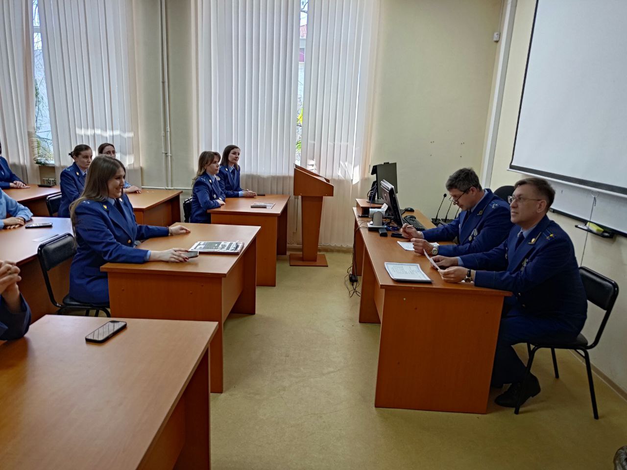 В ходе аудиторных занятий изучались вопросы организации и практики прокурорского надзора за соблюдением прав, свобод и законных интересов несовершеннолетних в социальной сфере, а также обеспечения и защиты прокурором их прав в уголовном и гражданском судопроизводстве.Проведены занятия по темам, посвященным прокурорскому надзору за исполнением законодательства о противодействии коррупции, этике и нравственным основам прокурорской деятельности, культуре письма и устной речи прокурорского работника, формированию статистической отчетности, патриотическому воспитанию и др.