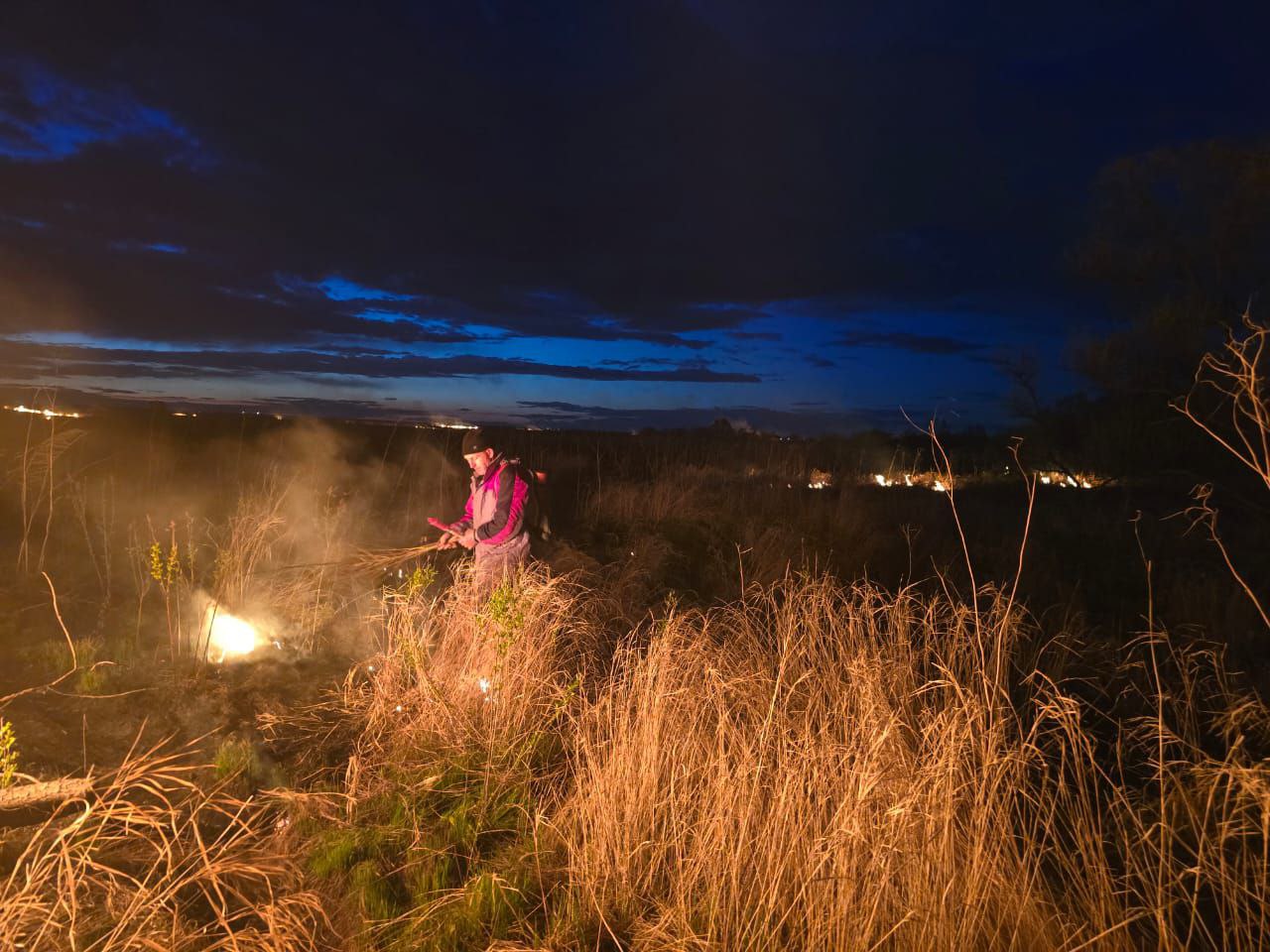 Спасателям удалось отбить кромку огня на острове Дачный. Протяжённость потушенной линии превысила пять километров. Распространение пожара на дачные строения не допущено.
