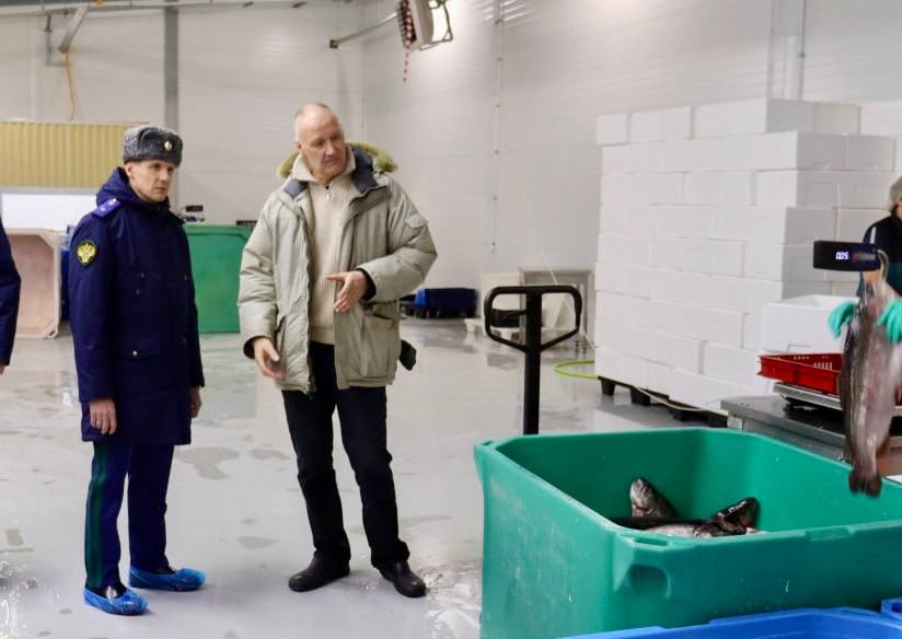 Еще одним пунктом рабочей поездки стал завод по выращиванию радужной форели ООО «Форелиум». Производственная мощность предприятия составляет до 500 тонн рыбы в год.