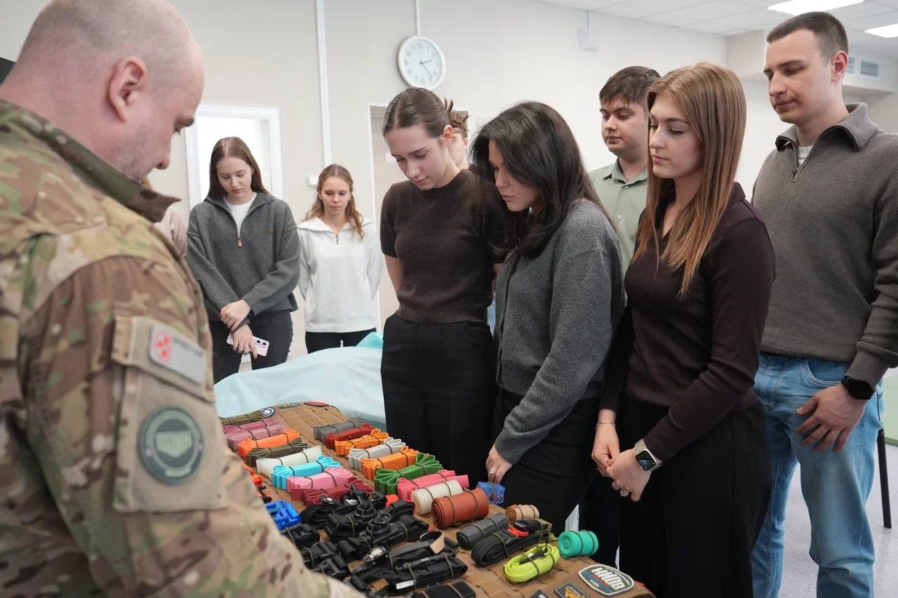 В завершение встречи студенты посетили военно-патриотический центр «ВОИН», где проведена экскурсия и обучающие занятия по управлению беспилотными летательными аппаратами и основам тактической медицины.