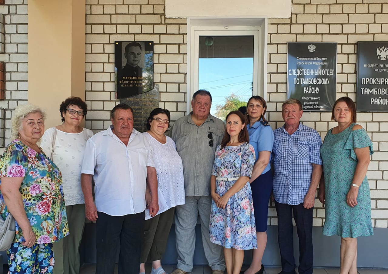 Участники мероприятия почтили память Мартыновича Федора Трофимовича, в честь которого в июле 2022 г. на здании прокуратуры Тамбовского района открыта мемориальная доска.