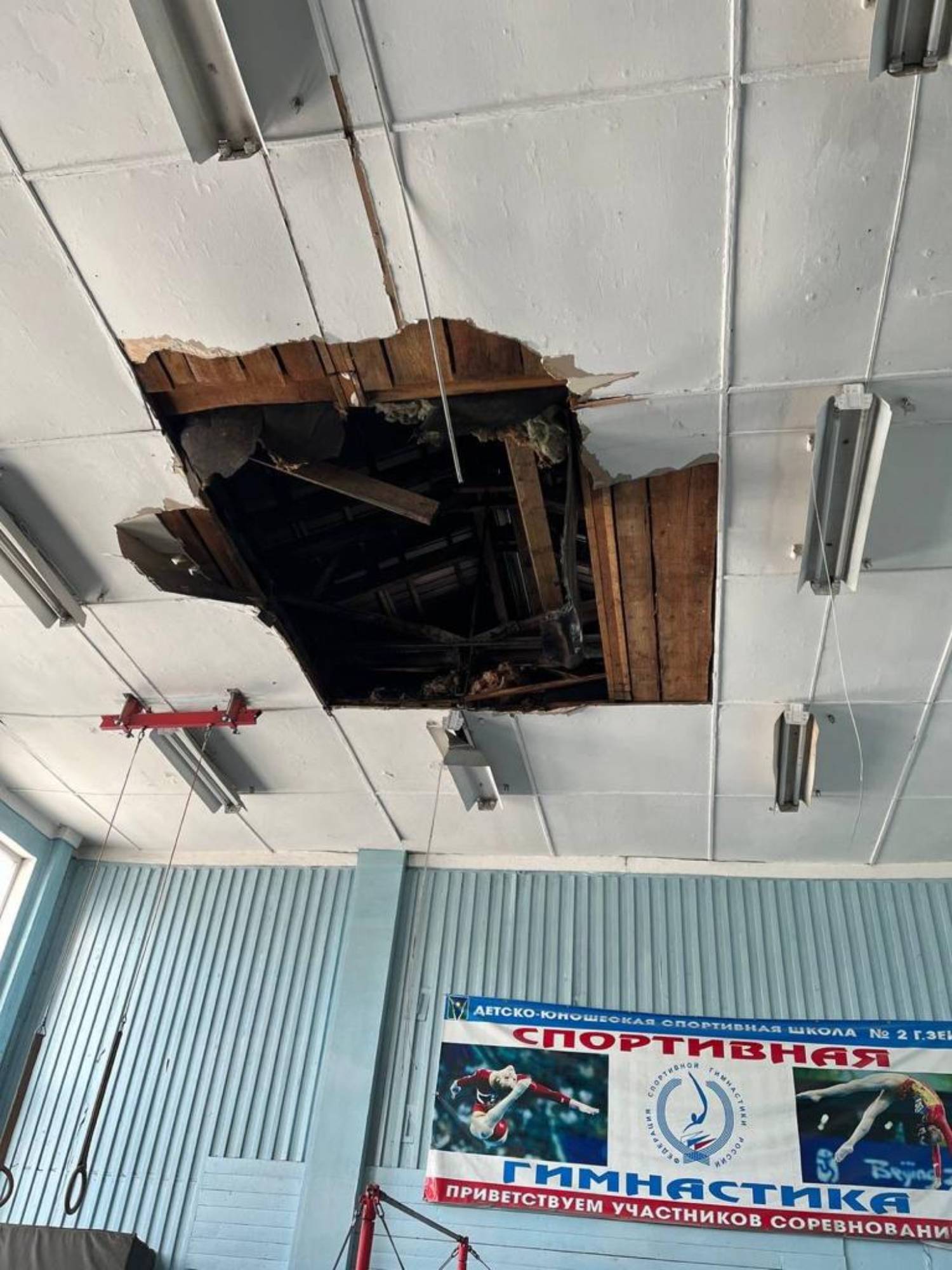 Установлено, что 12 февраля в дневное время произошло обрушение потолка в здании МБОУ ДЮСШ № 2 г. Зеи в помещении со снарядами гимнастического отделения.