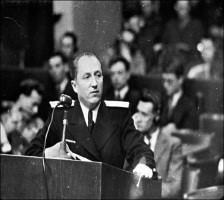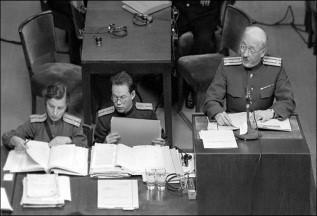 Выступление заместителя главного обвинителя от СССР полковника Покровского на Нюрнбергском процессе. |