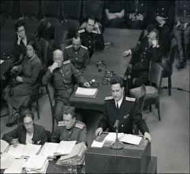 Выступление помощника главного обвинителя от СССР государственного советника юстиции 3-го класса Зоря на Нюрнбергском процессе. |