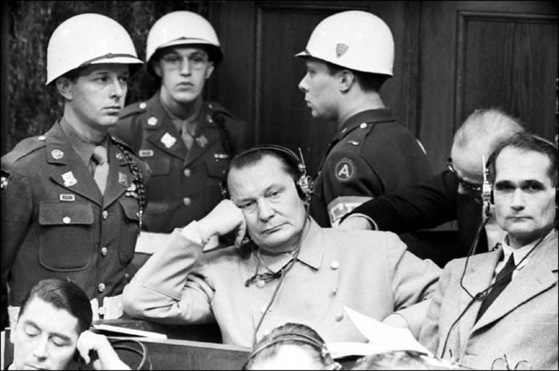 Геринг и Гесс на скамье подсудимых на Нюрнбергском процессе.