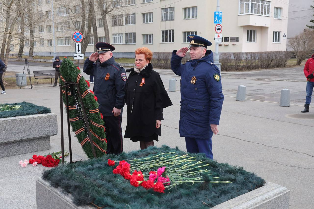 Ветераны, руководители силовых ведомств региона, кадеты и курсанты, представители областной и городской администраций почтили память погибших минутой молчания и возложили цветы к памятнику-монументу «Воинам-северянам, павшим в годы Великой Отечественной войны 1941-1945 гг.», у которого зажжен Вечный Огонь.