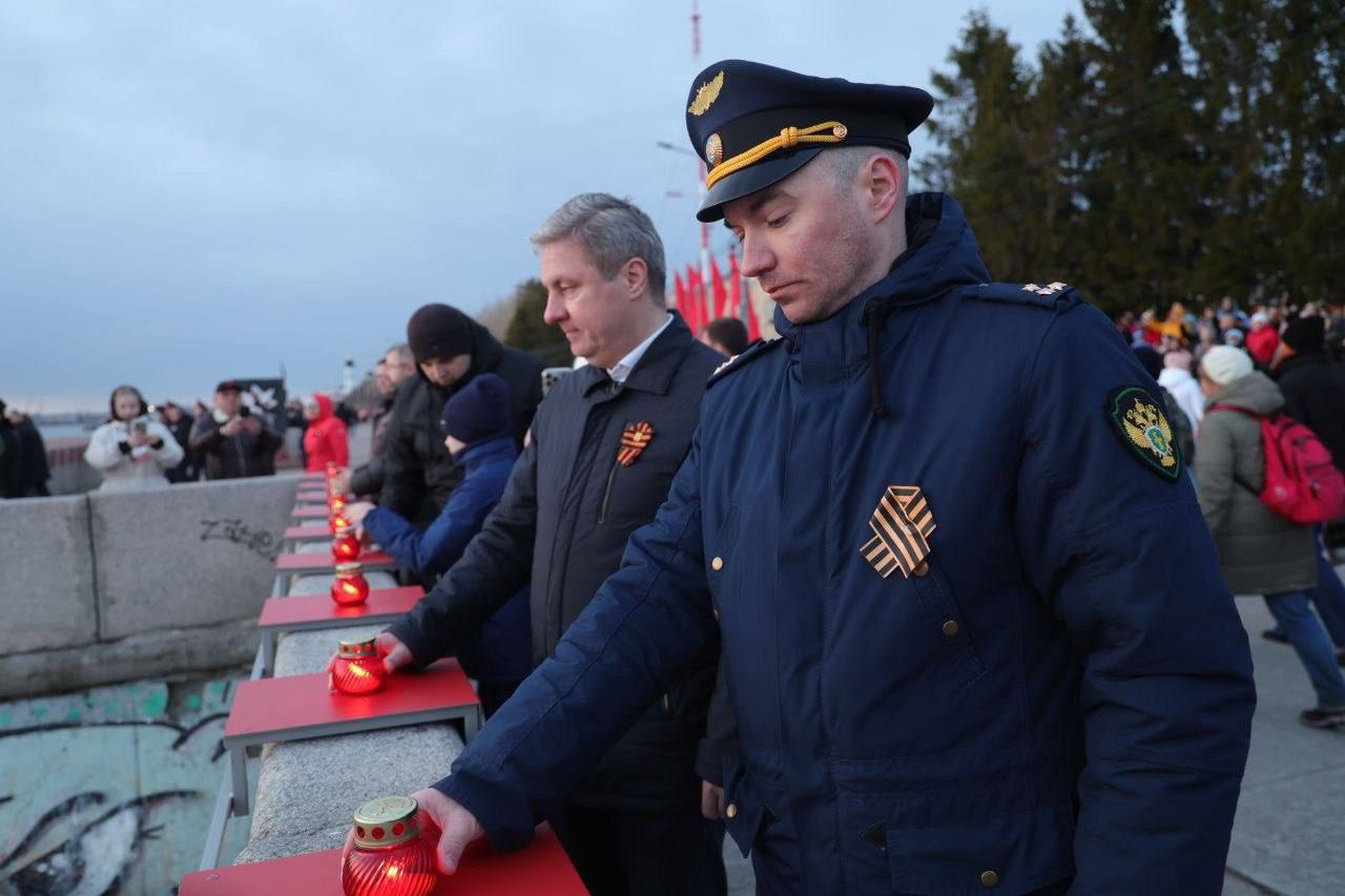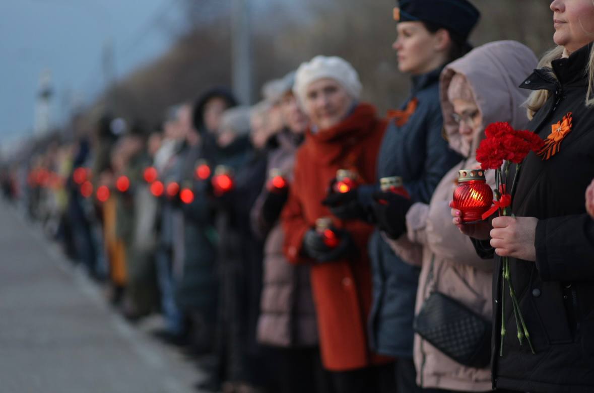 Выстроенная световая река стала символом памяти и единства поколений. Отдавая дань памяти защитникам Отечества, павшим в боях за свободу и независимость нашей Родины, участники мероприятия почтили память погибших минутой молчания.