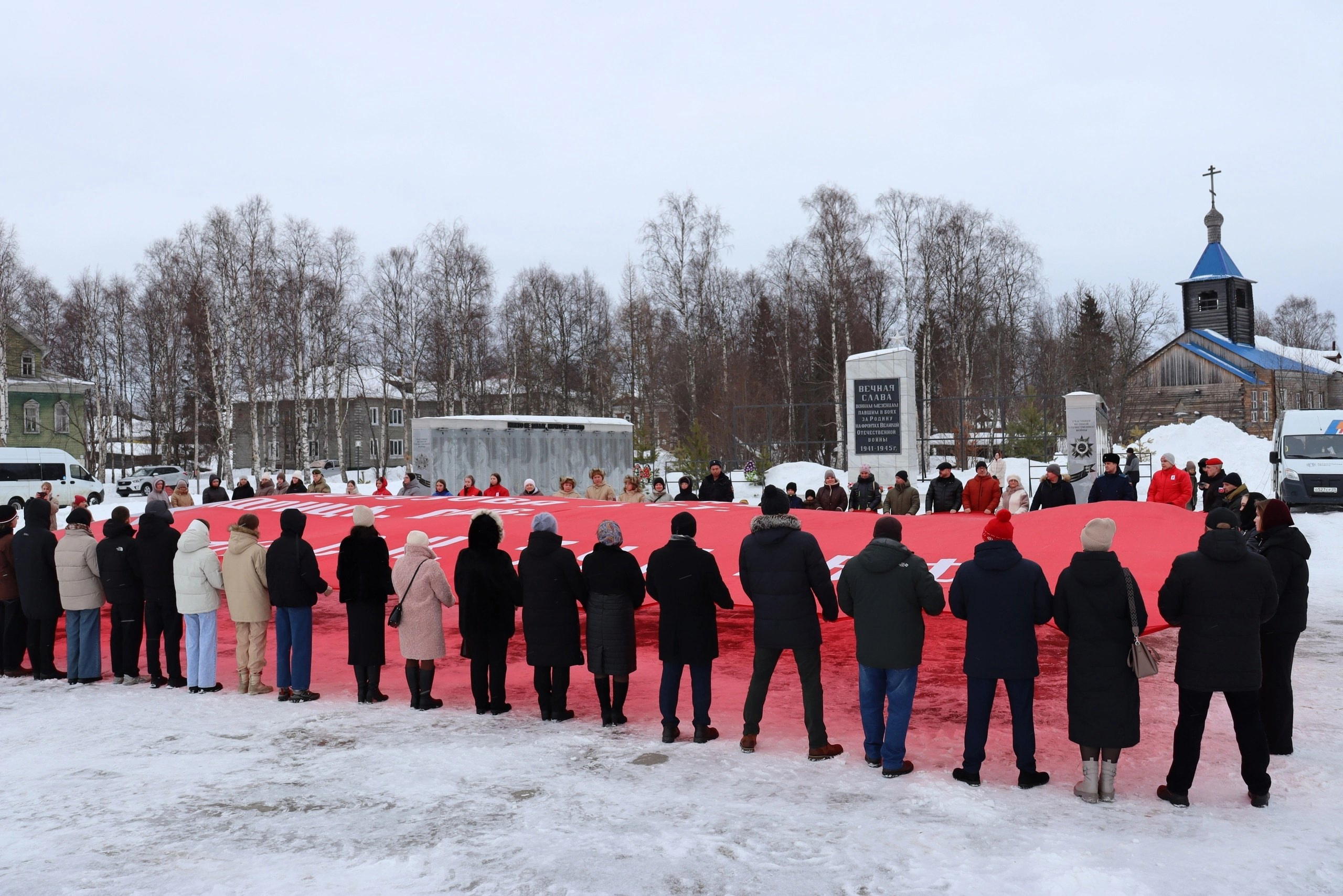 Масштабная копия Знамени Победы была развернута на районном мемориале мезенцам - участникам Великой Отечественной войны.