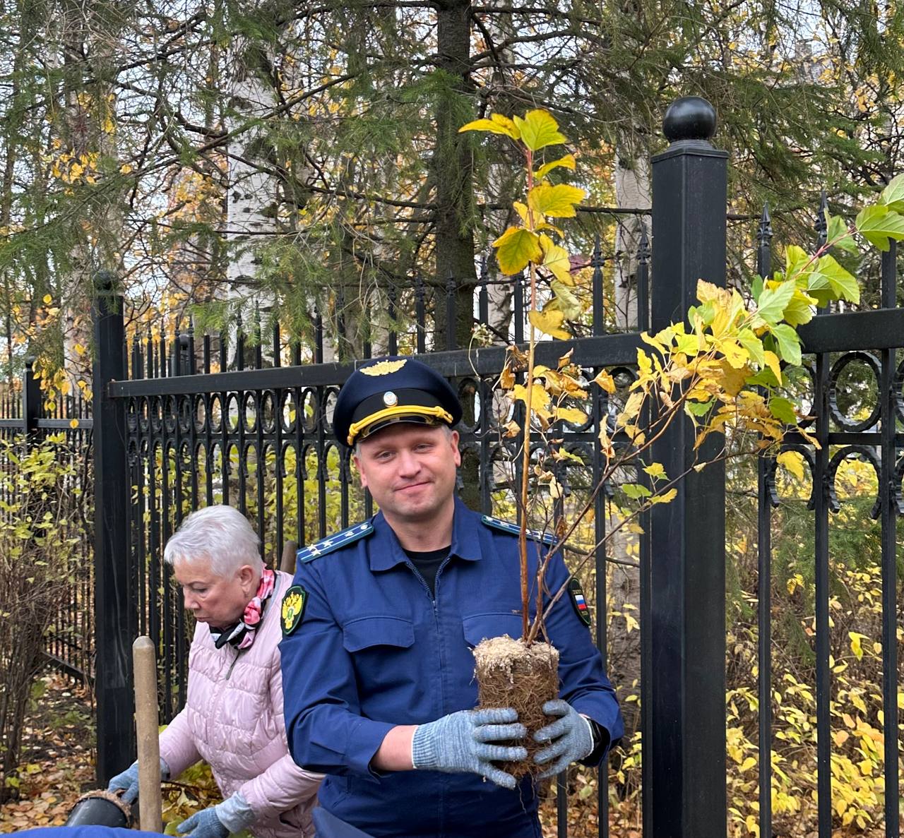 Сегодня работники прокуратуры и ветераны под руководством прокурора Архангельской области и Ненецкого автономного округа Николая Хлустикова у здания прокуратуры г. Архангельска высадили сосны и ели, а также кустарники калины.
