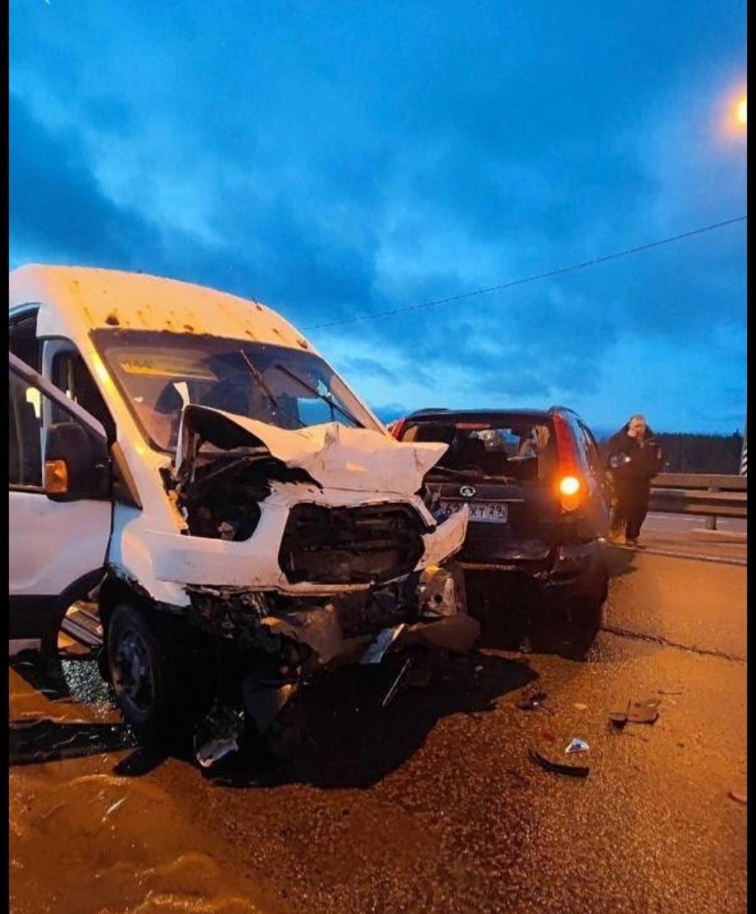 По предварительным данным 14.11.2025 в утреннее время в районе 1216-го километра федеральной автомобильной дороги М-8 «Холмогоры» (микрорайон «Зеленый Бор») водитель рейсового микроавтобуса не выдержал безопасную дистанцию до стоящих впереди двух легковых автомобилей и совершил наезд на них. В момент дорожно-транспортного происшествия в салоне микроавтобуса находились пассажиры, в том числе несовершеннолетние.