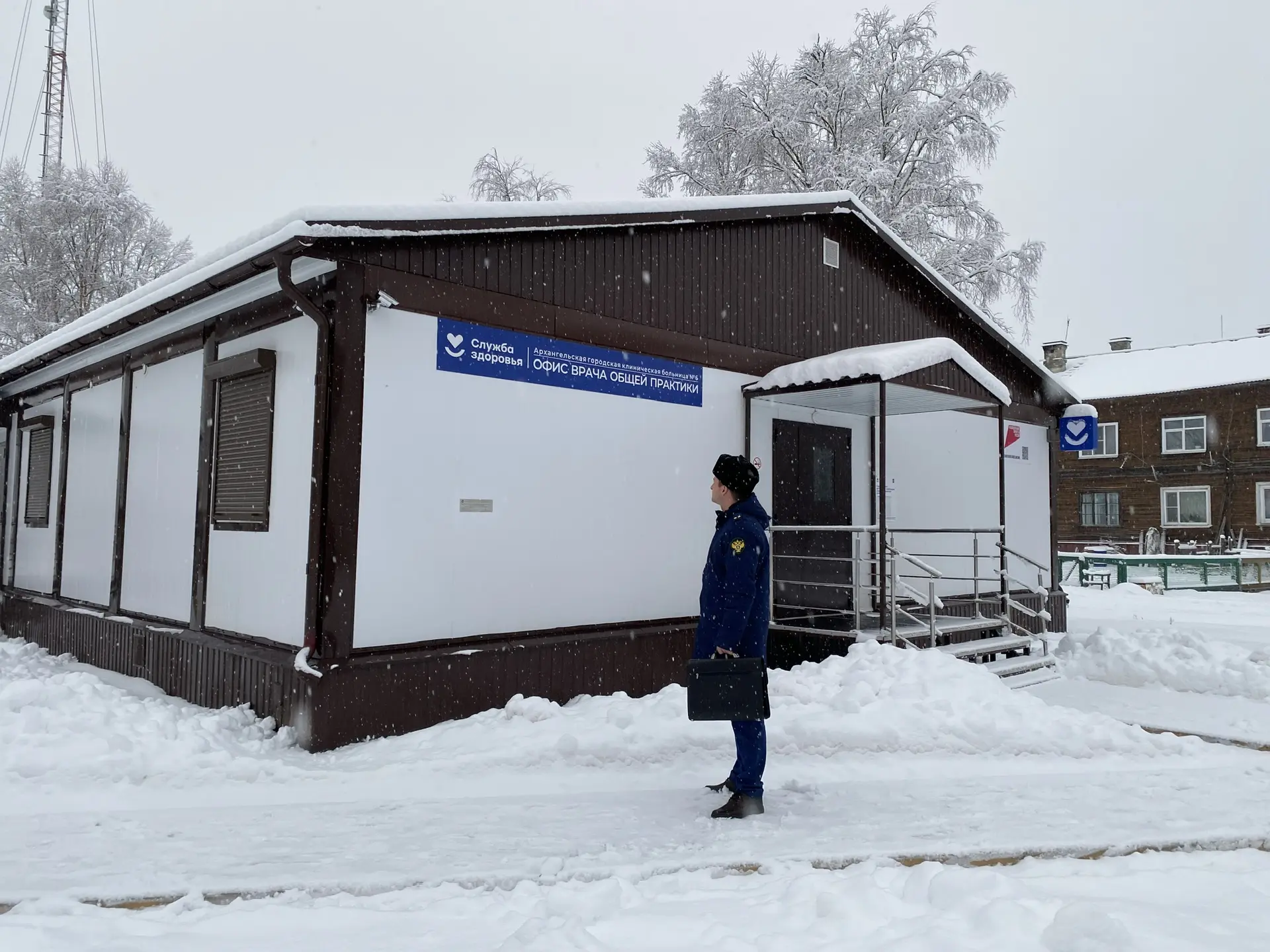 Заместитель прокурора города Архангельска Владислав Кононов с рабочим визитом посетил возведенный в рамках национального проекта «Здравоохранение» офис врача общей практики в поселке 29-го Лесозавода.