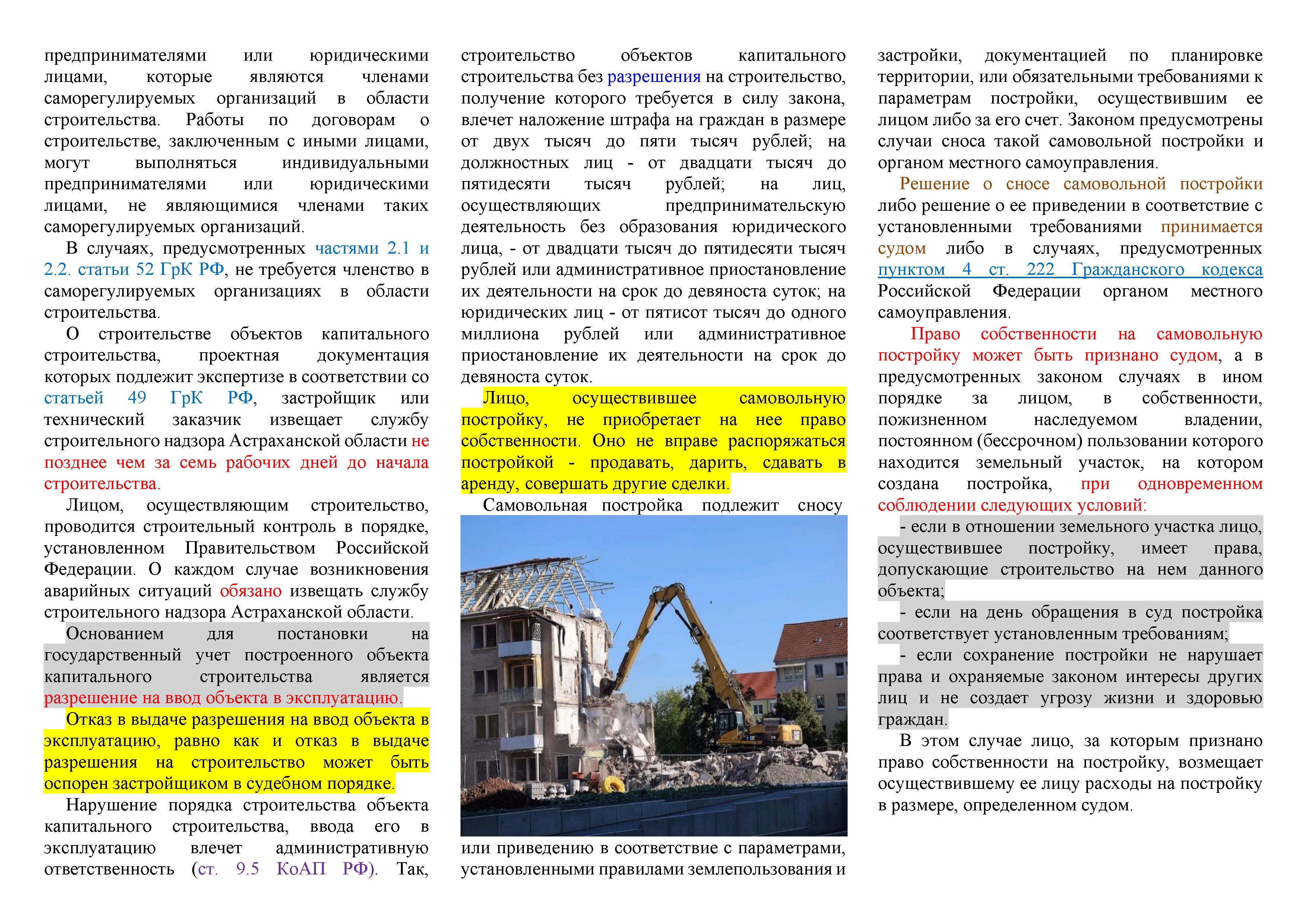 ПАМЯТКА Требования закона к возведению объектов капитального строительства, права и обязанности граждан и юридических лиц. Ответственность за самовольные постройки.
