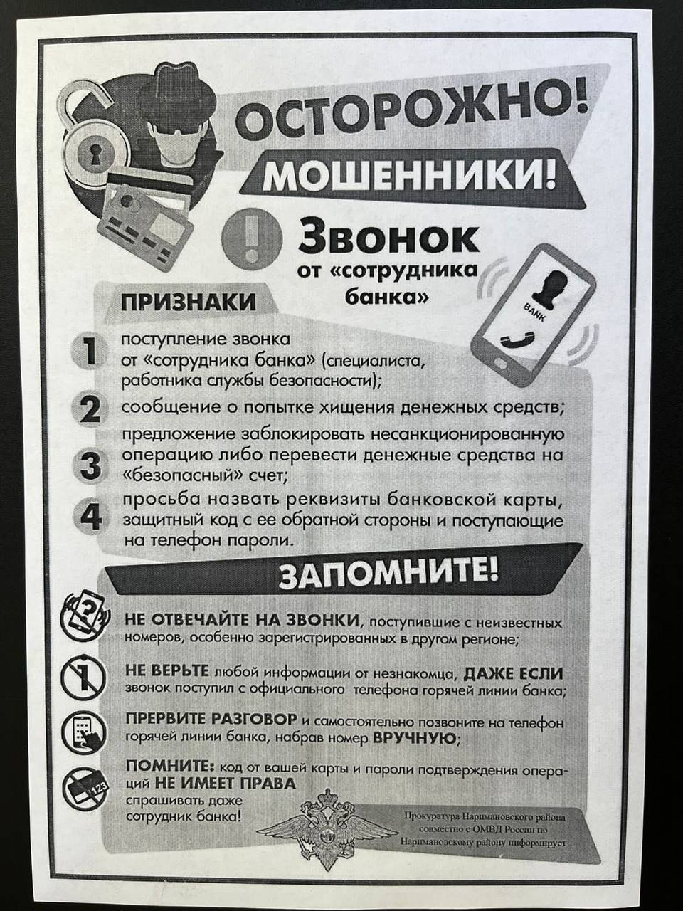 Кроме того, гражданам вручены листовки на тему: «Осторожно! Мошенники!».