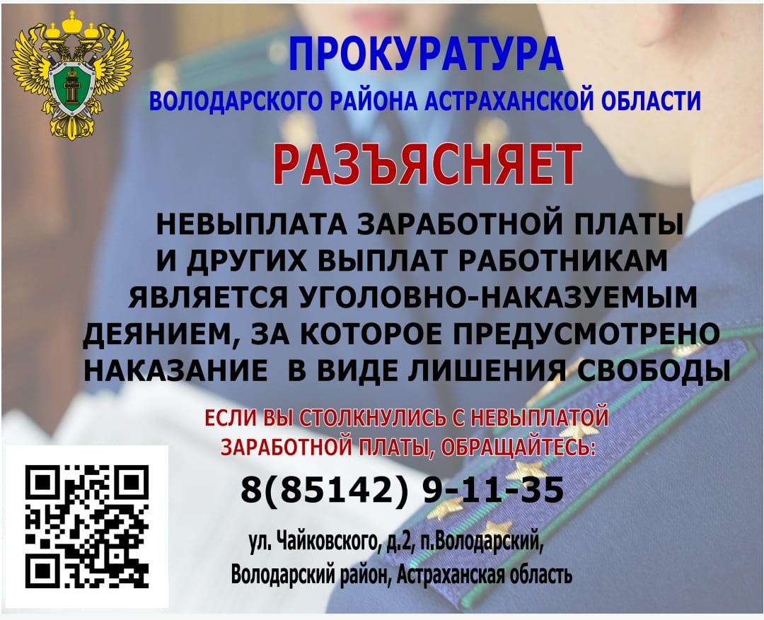 Баннер прокуратуры Володарского района "Невыплата зарплаты"