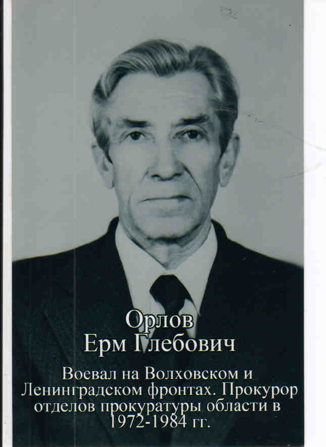 Орлов Ерм Глебович родился в 1922 году в селе Богородское Московской области. Вскоре семья переехала на постоянное место жительства в город Харьков, где в 1941 году Орлов Е.Г. окончил среднюю школу № 57. Еще до начала Великой Отечественной войны Орлов Е.Г. решил стать военным и в марте 1941 года поступил курсантом во Второе Харьковское танковое училище.