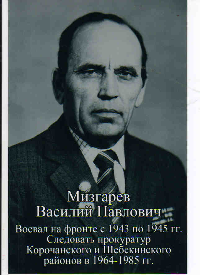 «Василий Павлович проявил исключительную верность профессии. О таких, как Мизгарев В.П., почетный работник прокуратуры Александр Иванович Гетман, посвятивший свою жизнь следствию, как-то сказал: «Профессиональная карьера – это не продвижение по службе, а достижение мастерства и совершенства в работе, что гораздо важнее…».