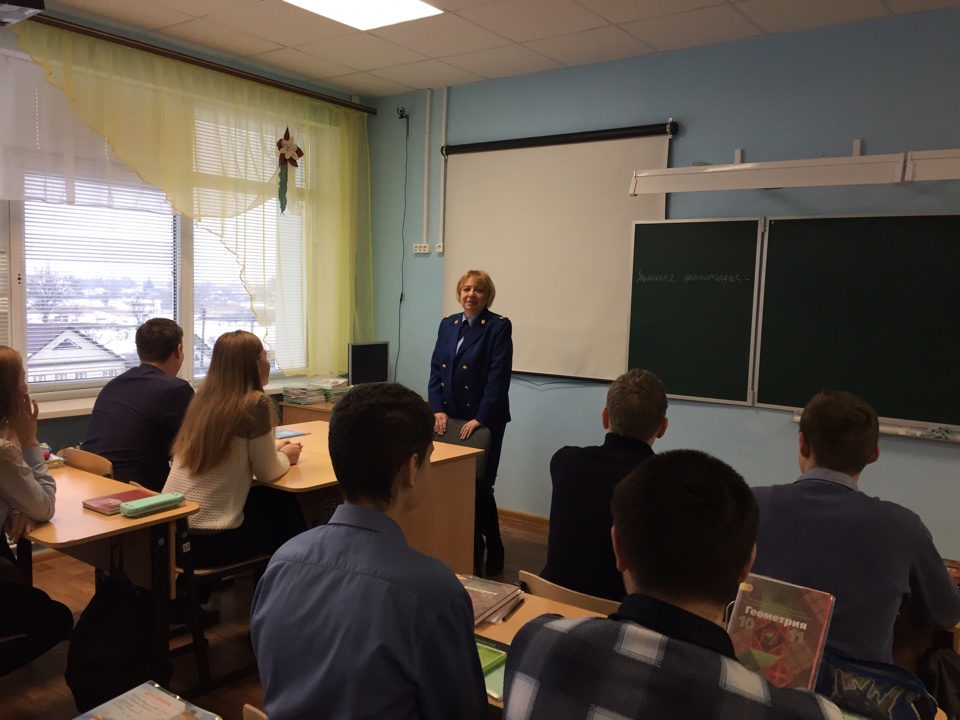 6 декабря 2018 года заместитель прокурора Ровеньского района Татьяна Мурадова встретилась с учащимися десятых классов МБОУ «Ровеньская СОШ с углубленным изучением отдельных предметов».