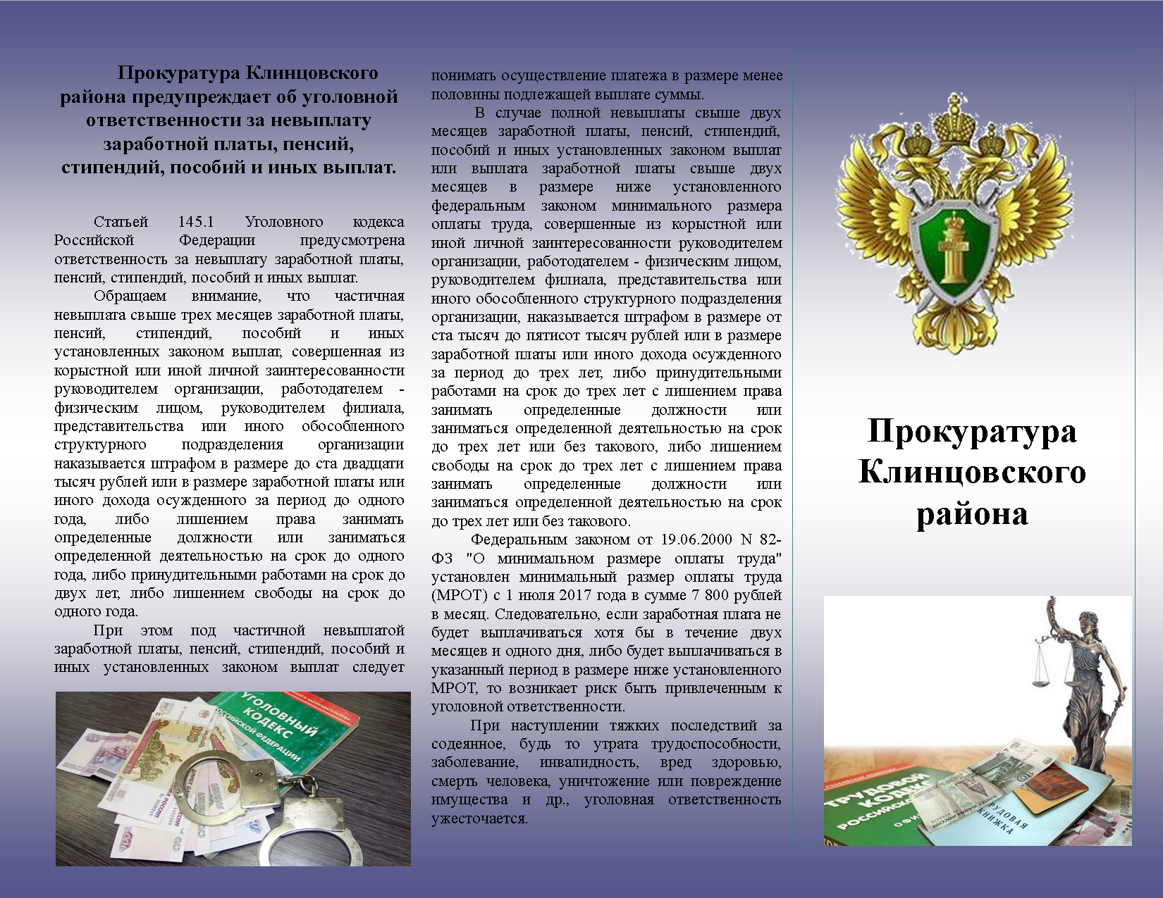 Ответственность за невыплату заработной платы, пенсий, стипендий, пособий и иных выплат