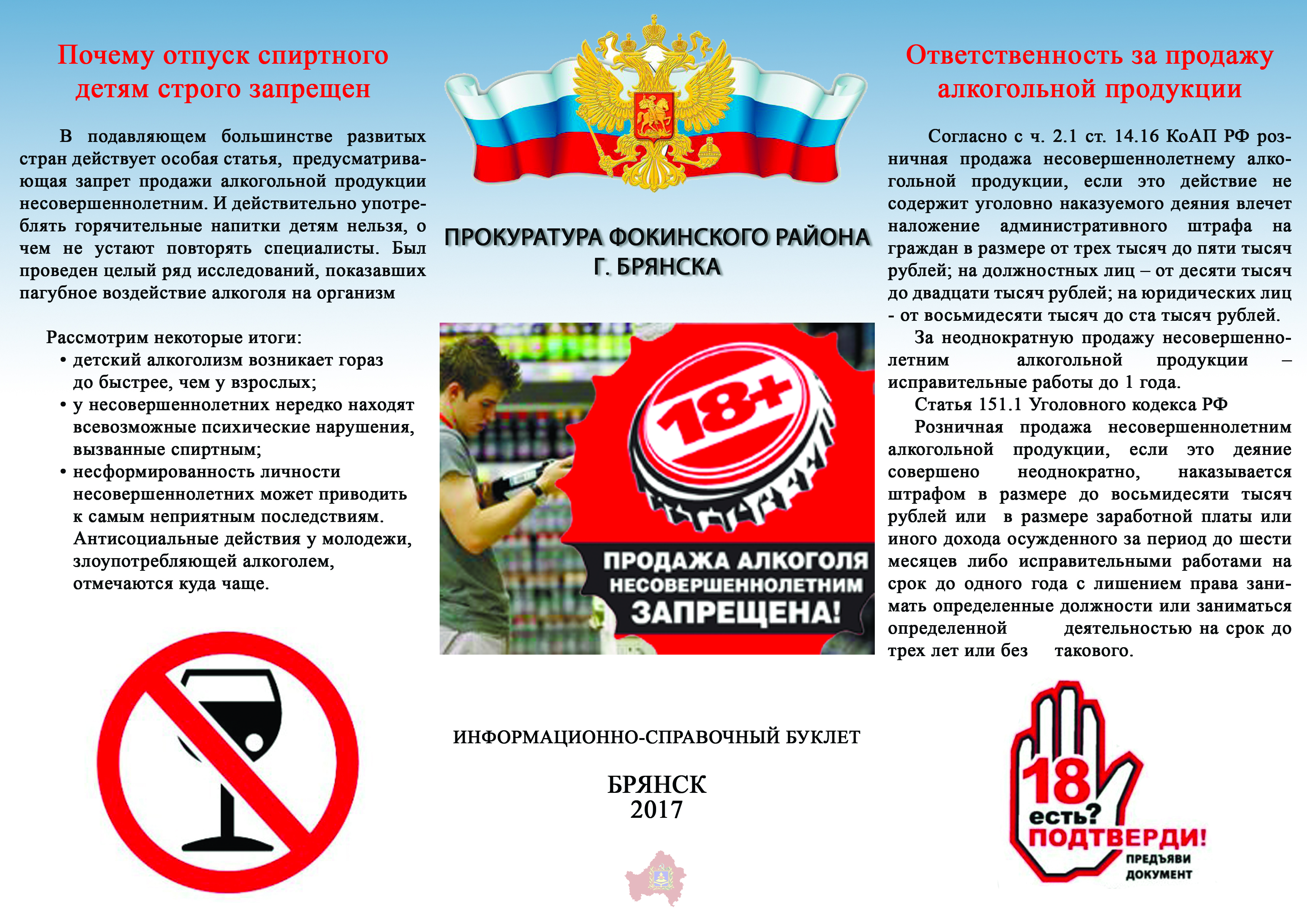 Ответственность за продажу алкогольной продукции несовершеннолетним