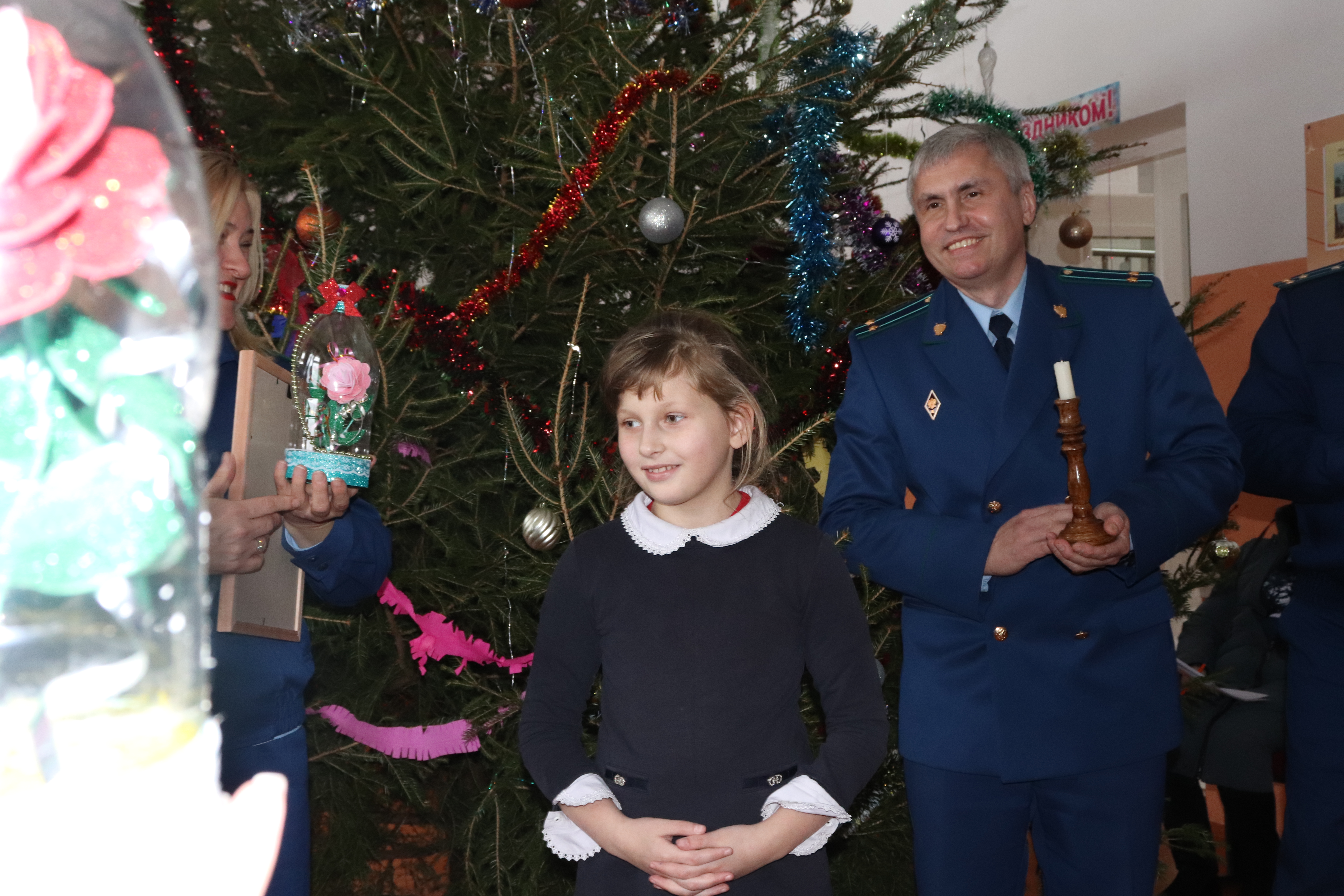 Начальник уголовно-судебного управления Сергей Гильдиков, старшие помощники прокурора области Эльвира Симутина и Ирина Лачко, прокурор Мглинского района Сергей Рыженко от коллектива прокуратуры поздравили воспитанников и работников учреждения с наступающим праздником, пожелали крепкого здоровья, успехов и исполнения желаний, а также преподнесли подарки.