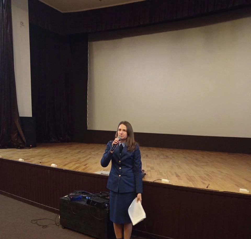 До начала просмотра помощник прокурора Судогодского района Ольга Курысёва рассказала присутствующим о событиях фильма.