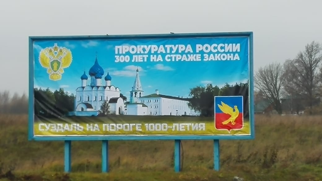 Прокуратурой Суздальского района подготовлен и размещен баннер посвященный двум замечательным датам - 300 летию Прокуратуры России и 1000 летию земли Суздальской