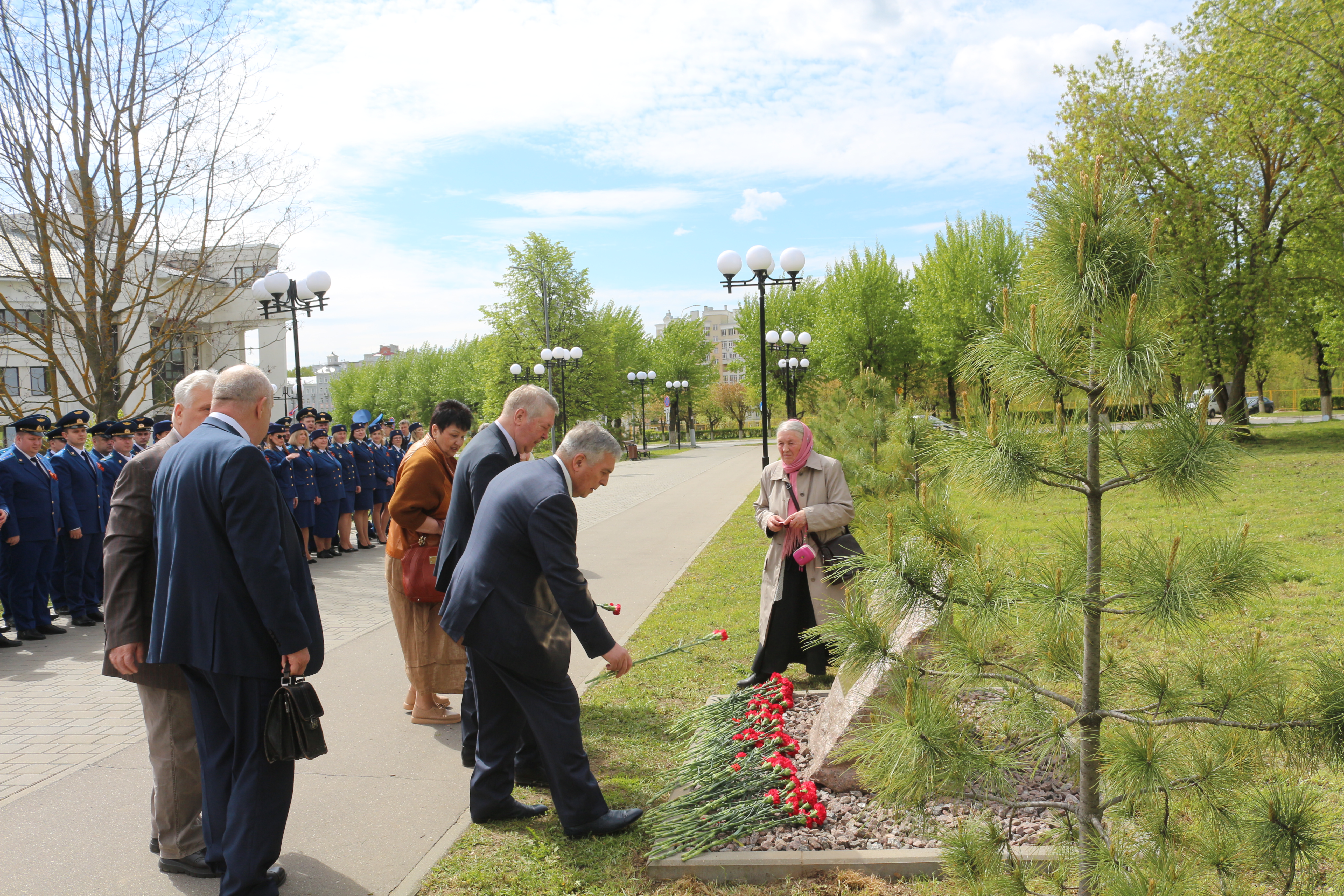 По традиции сотрудники прокуратуры и ветераны возложили цветы к Вечному огню на площади 30-летия Победы.