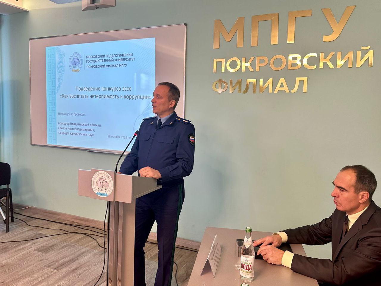 Вместе с руководителем районного надзорного ведомства Василием Сигаевым прокурор области подвёл итоги конкурса эссе на тему «Как воспитать нетерпимость к коррупции», организованного прокуратурой Петушинского района среди студентов. Победителям вручены памятные дипломы.