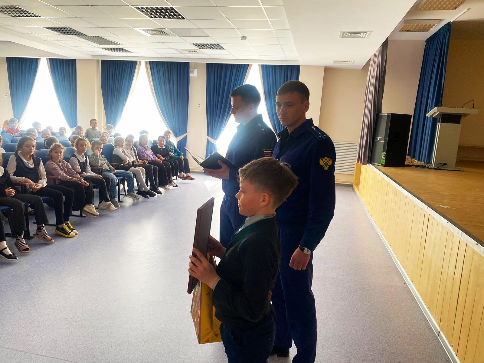 7 апреля прокурор Камешковского района Владимир Мановец и его заместитель Дмитрий Фещенко встретились с учащимися МБОУ ООШ № 3 г. Камешково и торжественно наградили двоих из них грамотами и памятными подарками за активную жизненную позицию, ответственное и добросовестное отношение к вопросам соблюдения законности и правопорядка.