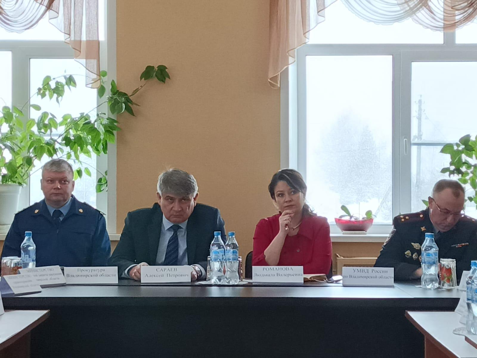 В мероприятии приняли участие Уполномоченный по правам человека во Владимирской области Людмила Романова, Суздальский межрайонный прокурор Андрей Чернов, глава администрации района Алексей Сараев, представители УМВД, СУ СК России по региону, Министерств социальной защиты населения, здравоохранения Владимирской области, Отделения Фонда социального страхования и пр.