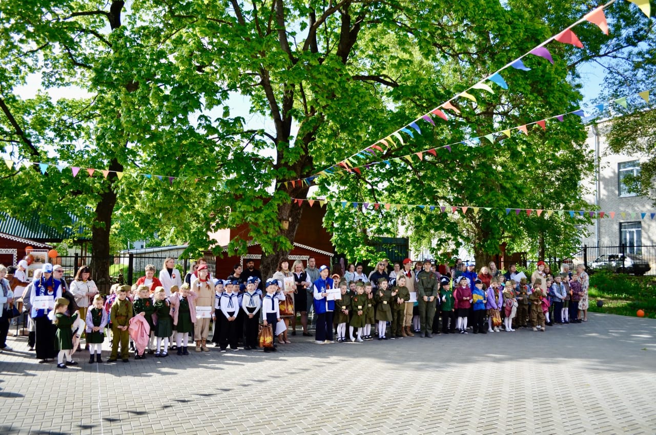 Малыши, облаченные в форменное обмундирование, показали командный дух, прошли перед судейской коллегией строевым шагом, пропев солдатские песни.