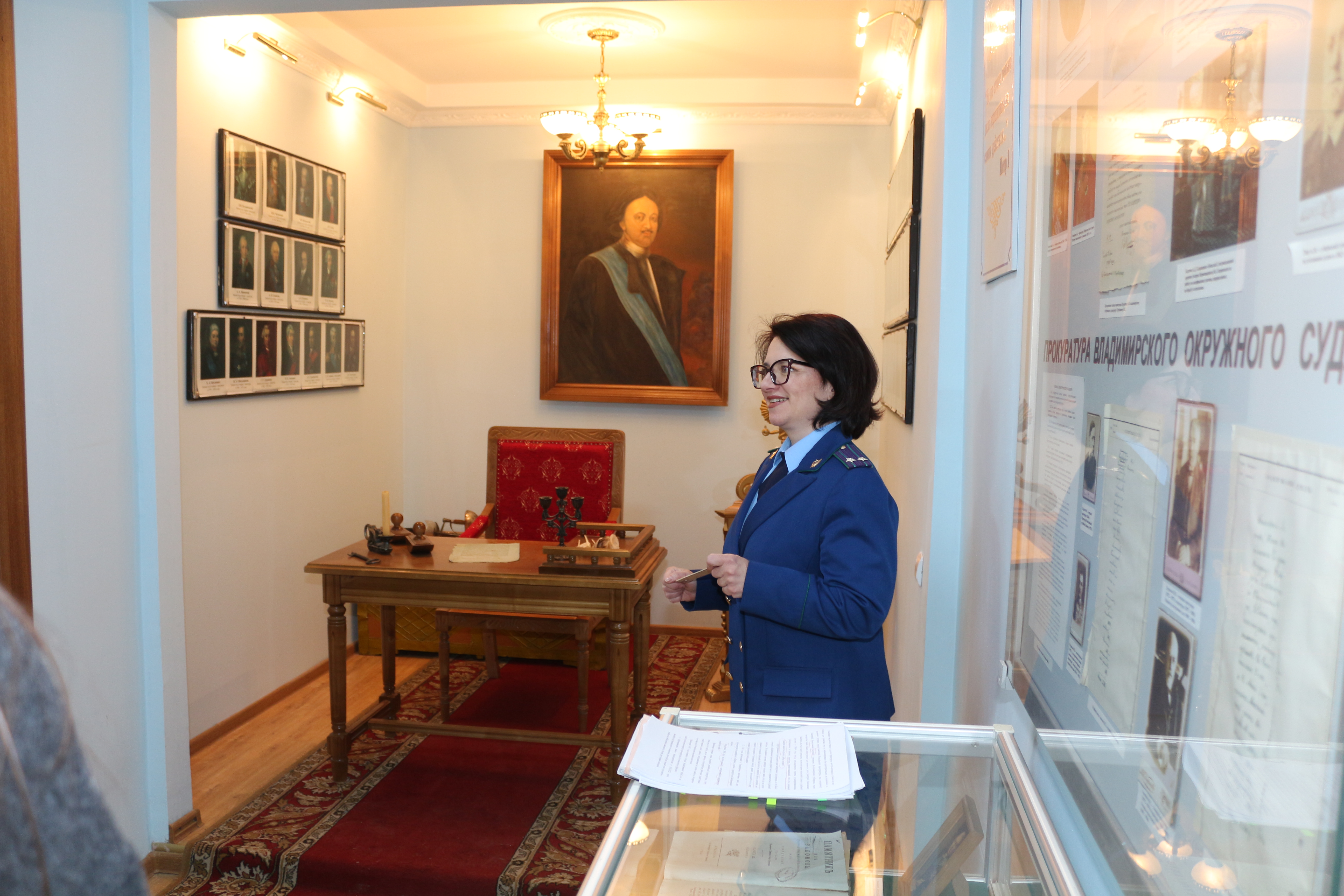 Анна Витальевна рассказала гостям об основных вехах создания российской прокуратуры и ее развитии, об образовании и становлении надзорного ведомства во Владимирской области.