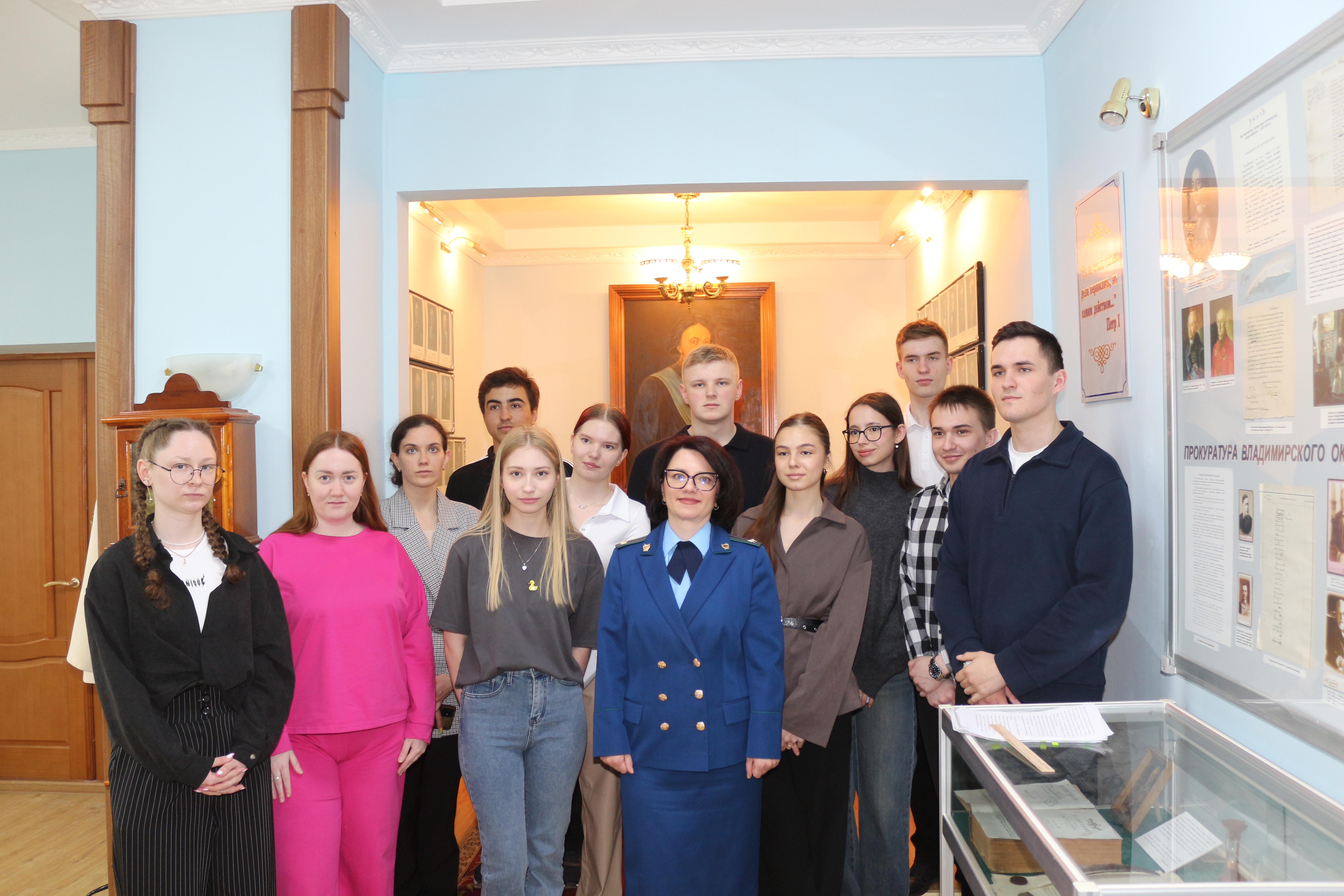 Старший прокурор отдела кадров Анна Гоголева провела для студентов Муромского института (филиала) Владимирского государственного университета им. А.Г. и Н.Г. Столетовых тематическую экскурсию в музее прокуратуры области.
