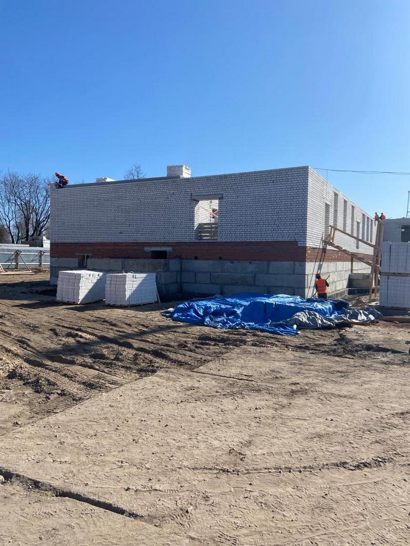 В настоящее время строительство здания школы ведётся подрядной организацией с отставанием от установленного контрактом графика.