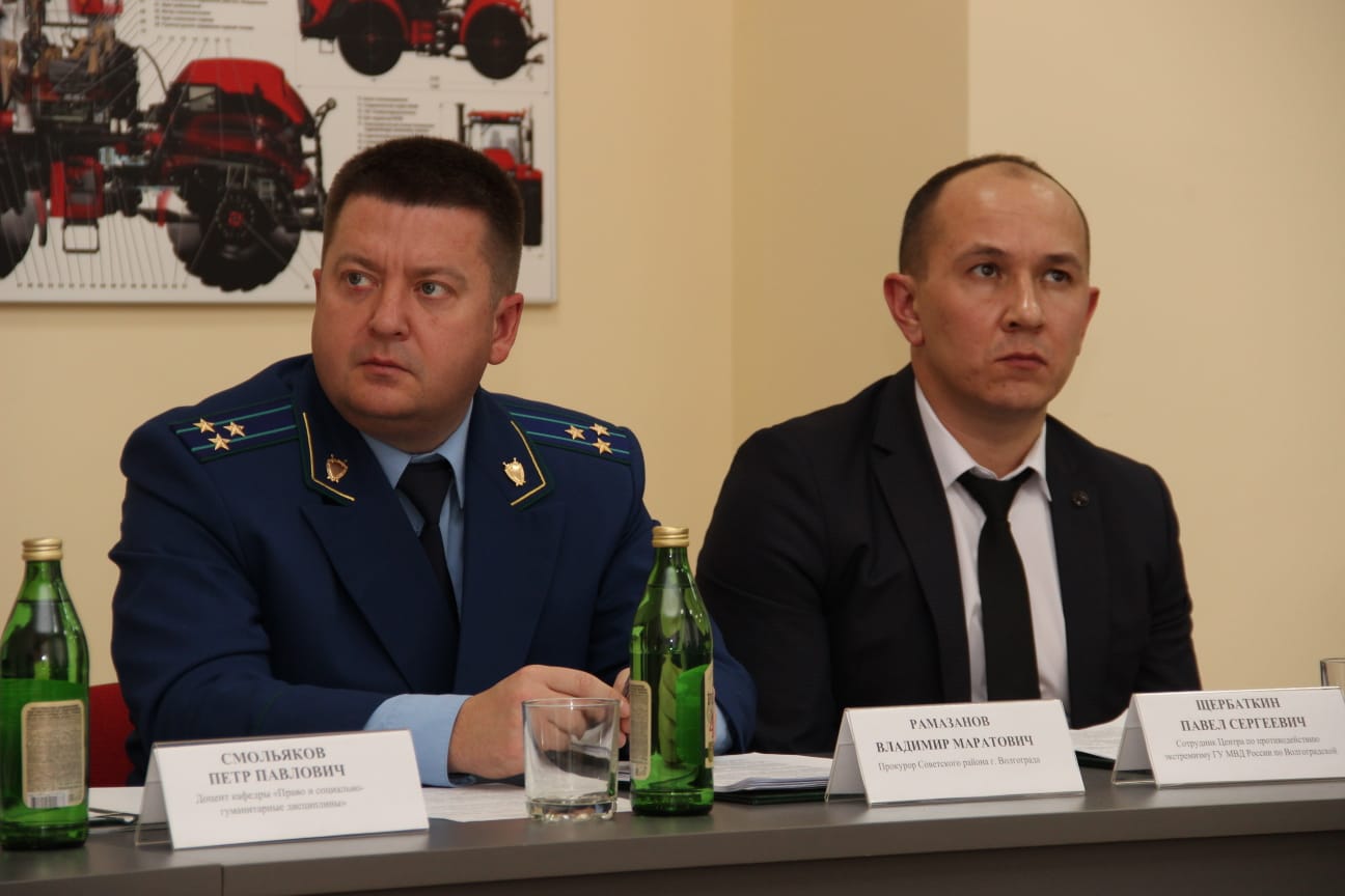 В формате круглого стола, проведенного на базе Волгоградского аграрного университета, прокурор района довел до участников мероприятия информацию о роли органов прокуратуры в борьбе с экстремизмом, в том числе по пресечению распространения в сети «Интернет» экстремистских материалов, а также об уголовной и административной ответственности за совершение противоправных действий экстремистского характера.