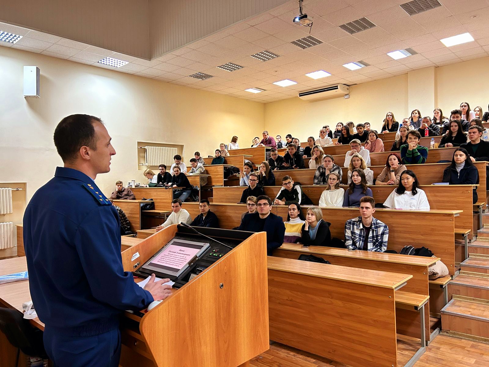 Прокурор отдела по надзору за производством дознания и оперативно-розыскной деятельностью управления по надзору за уголовно-процессуальной и оперативно-розыскной деятельностью прокуратуры Волгоградской области Евгений Яшин провел практико-ориентированное занятие со студентами-юристами 4-го и 5-го курсов Института права ВолГУ.