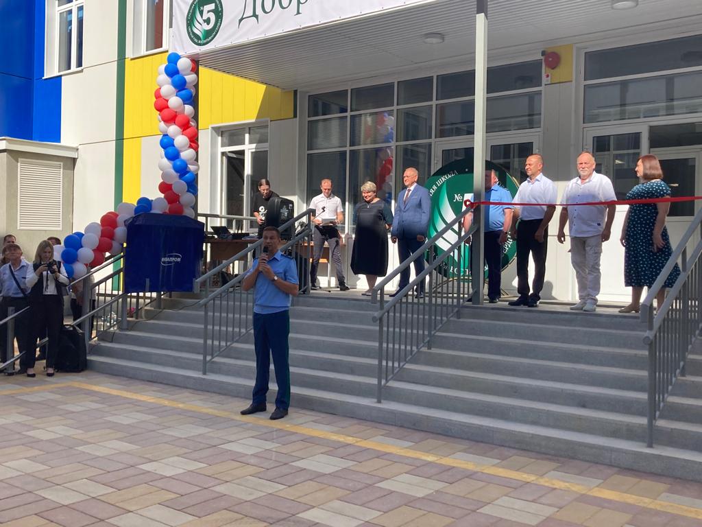 На церемонии открытия с участием руководителей органов власти и местного самоуправления Д.А. Костенко поздравил первоклассников и других учеников, их родителей, педагогический коллектив новой школы с началом учебного года, пожелал успехов и высоких достижений в учебе и трудовой деятельности.