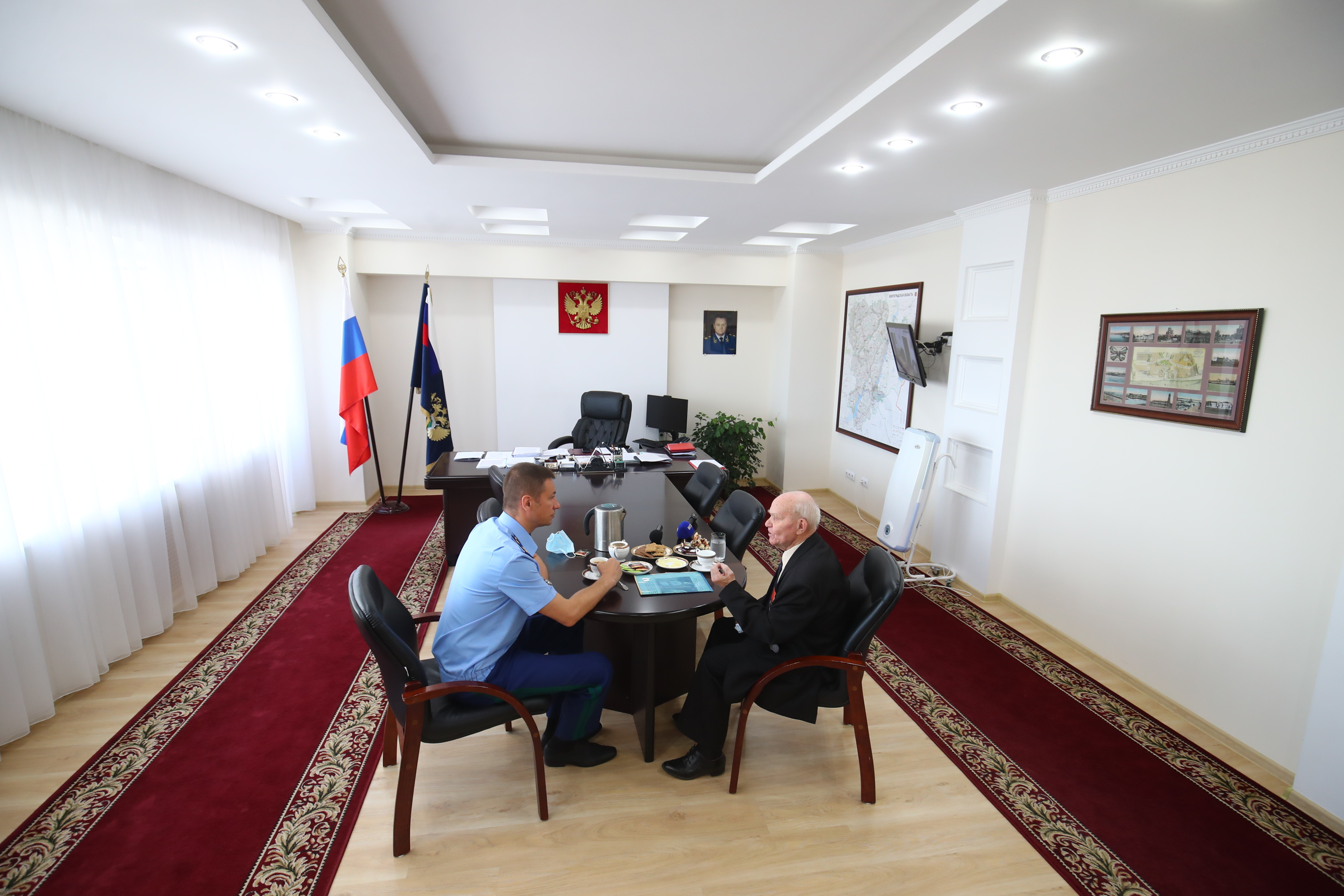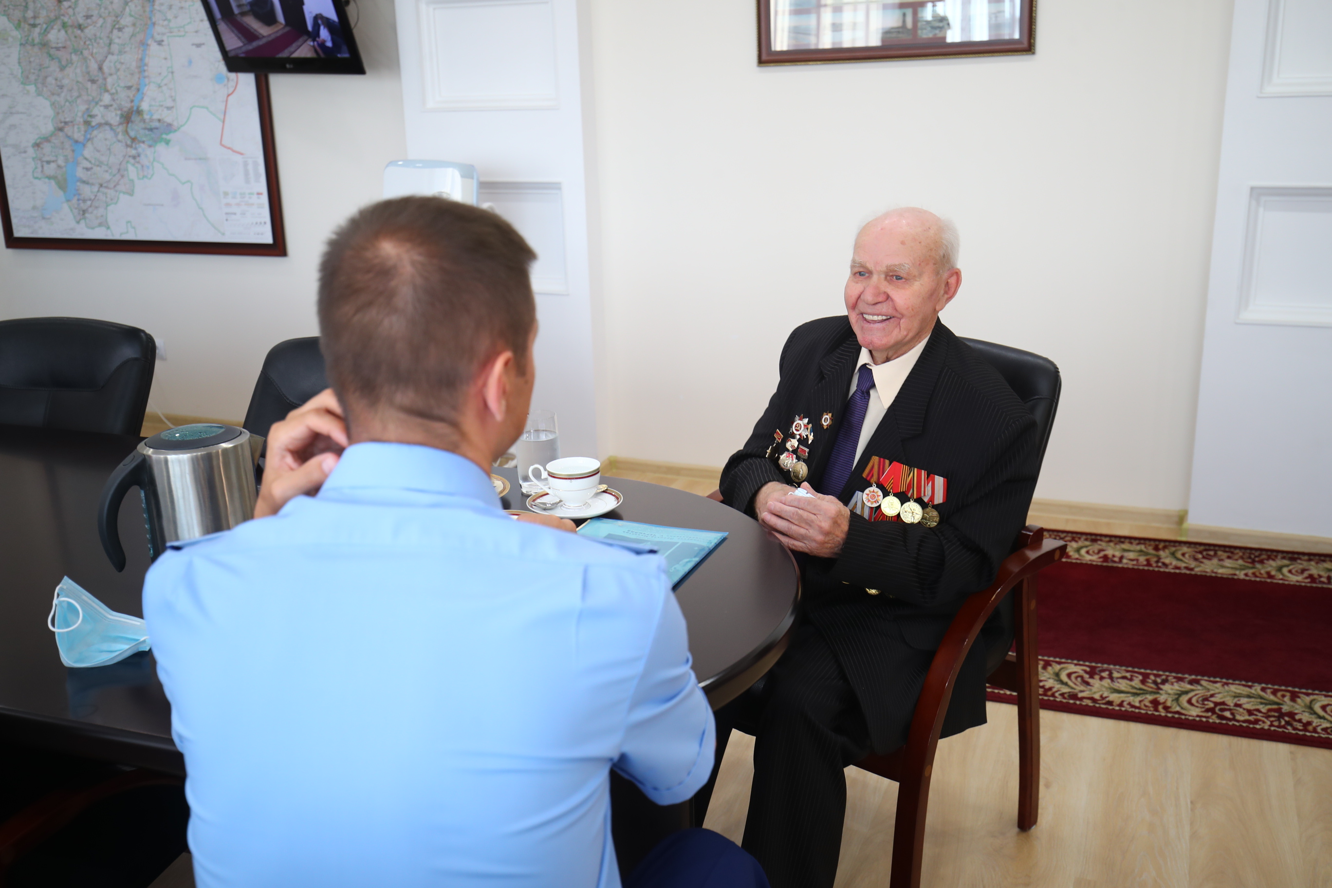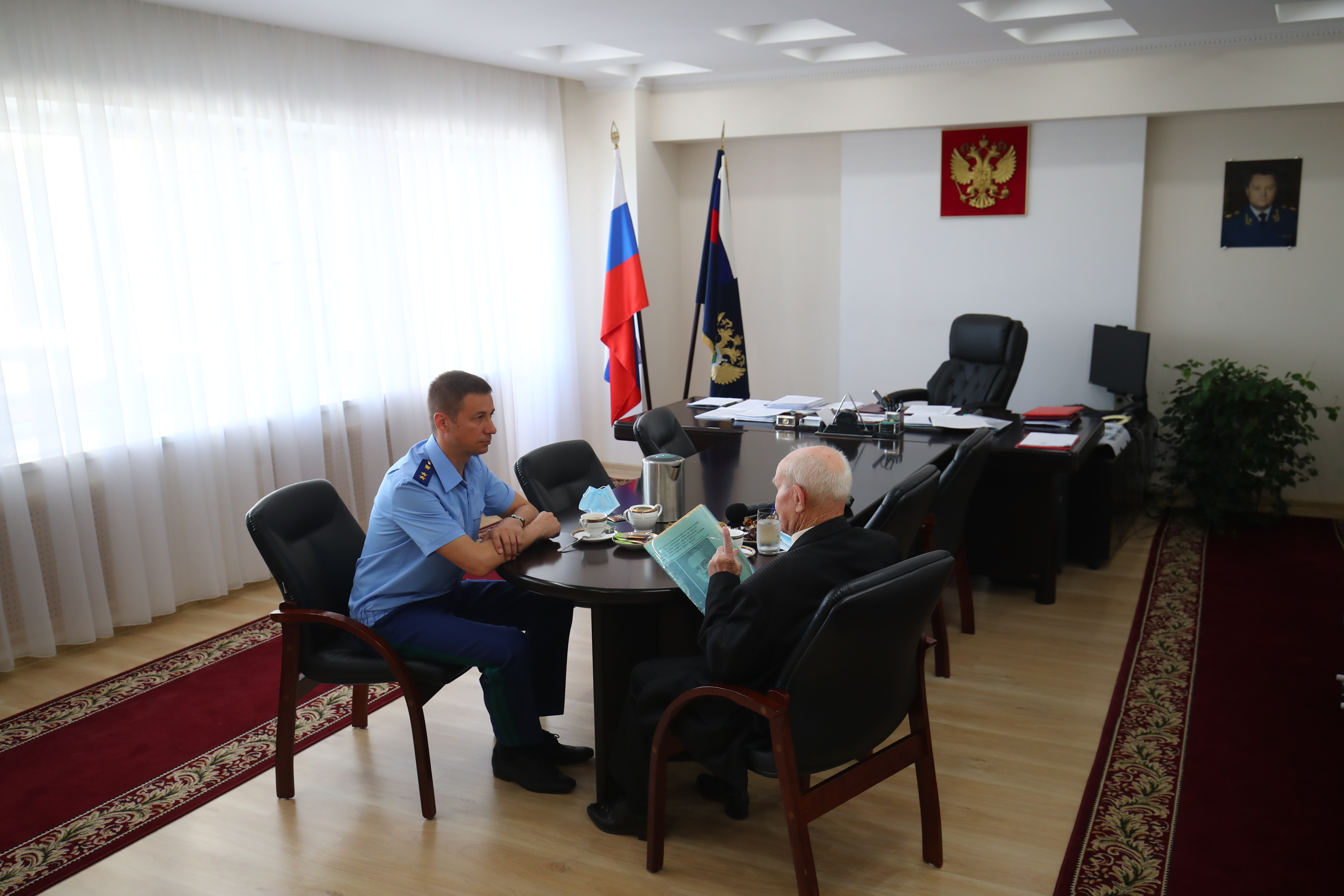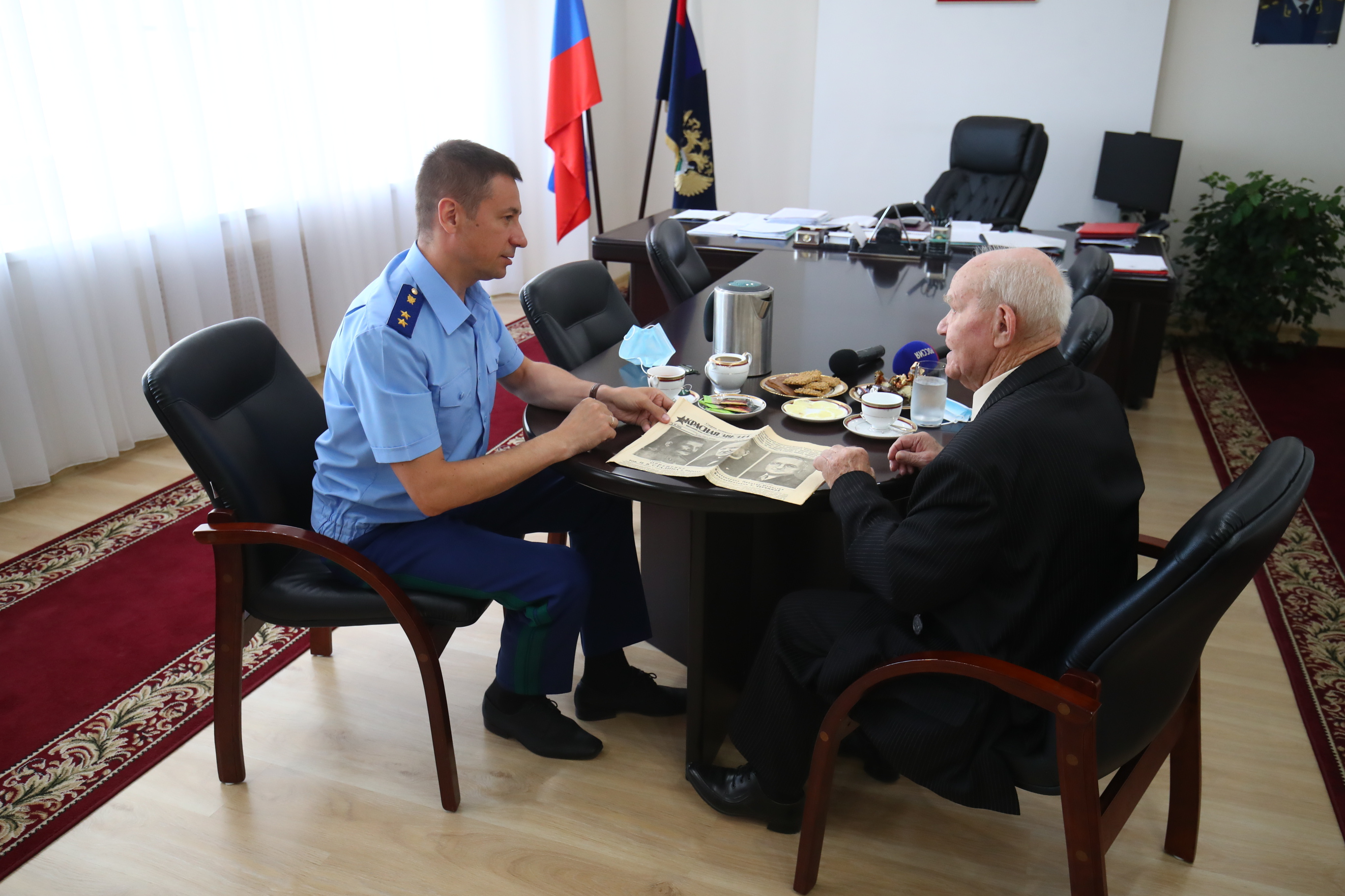 В преддверии празднования 300-летия российской прокуратуры в прокуратуре Волгоградской области состоялась встреча прокурора региона Дениса Алексеевича Костенко с ветераном Великой Отечественной войны Александром Федоровичем Шибаевым. Ранее ветеран обращался в органы прокуратуры с заявлением о нарушении социальных прав, которое было рассмотрено и удовлетворено.