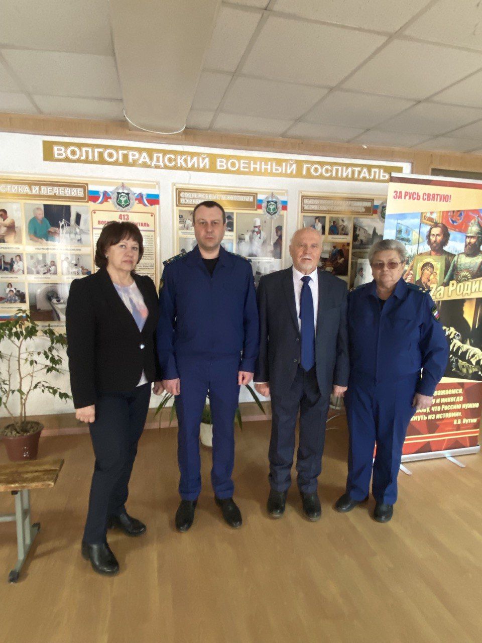 Работники прокуратуры Волгоградской области совместно с членами совета ветеранов региональной прокуратуры поздравили участников специальной военной операции, находящихся на лечении в Волгоградском военном госпитале и госпитале г. Камышина с Днём защитника Отечества.