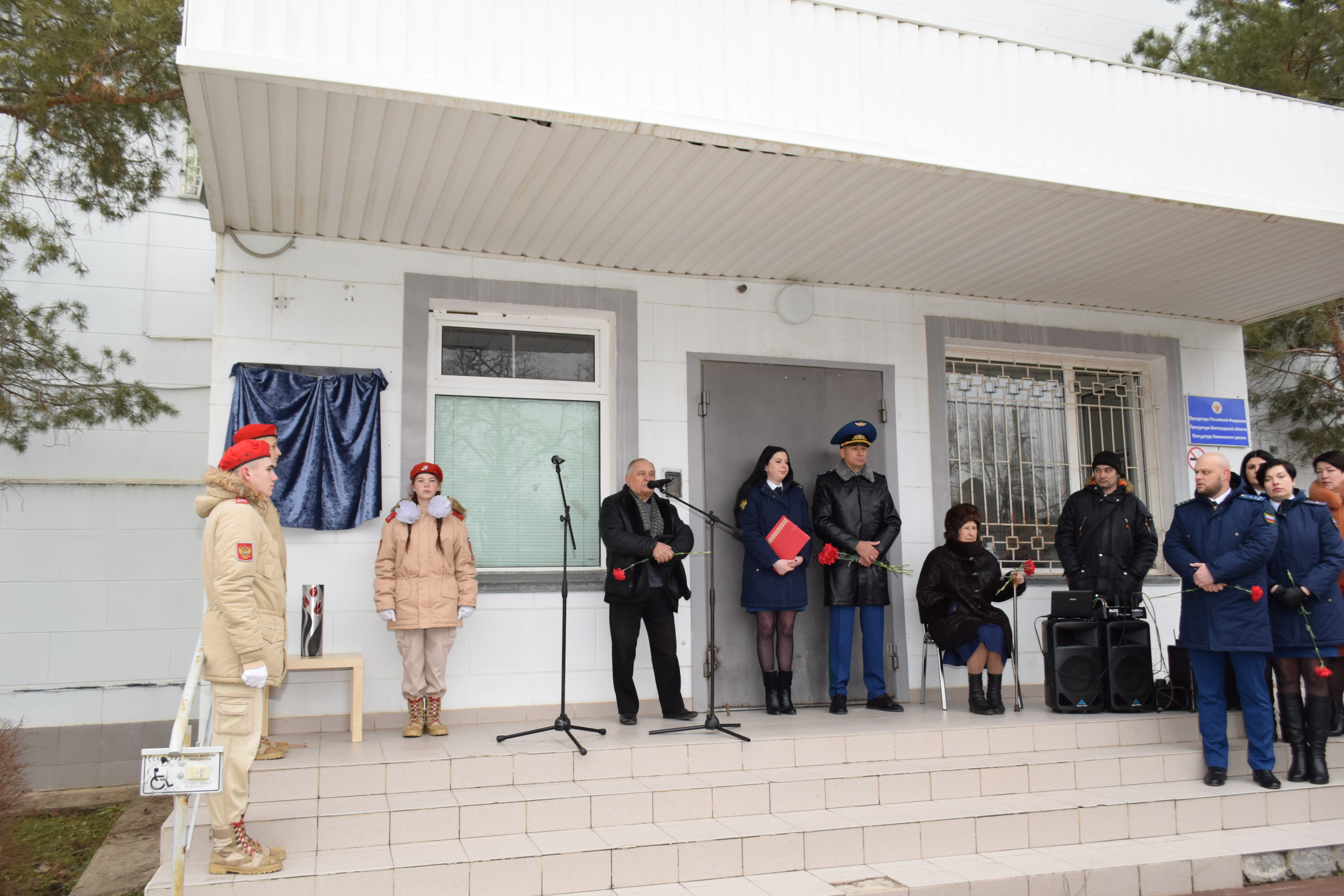 Право открытия мемориальной доски предоставлено прокурору Волгоградской области государственному советнику юстиции 2 класса Денису Алексеевичу Костенко и вдове Александра Михайловича – Марии Захаровне.