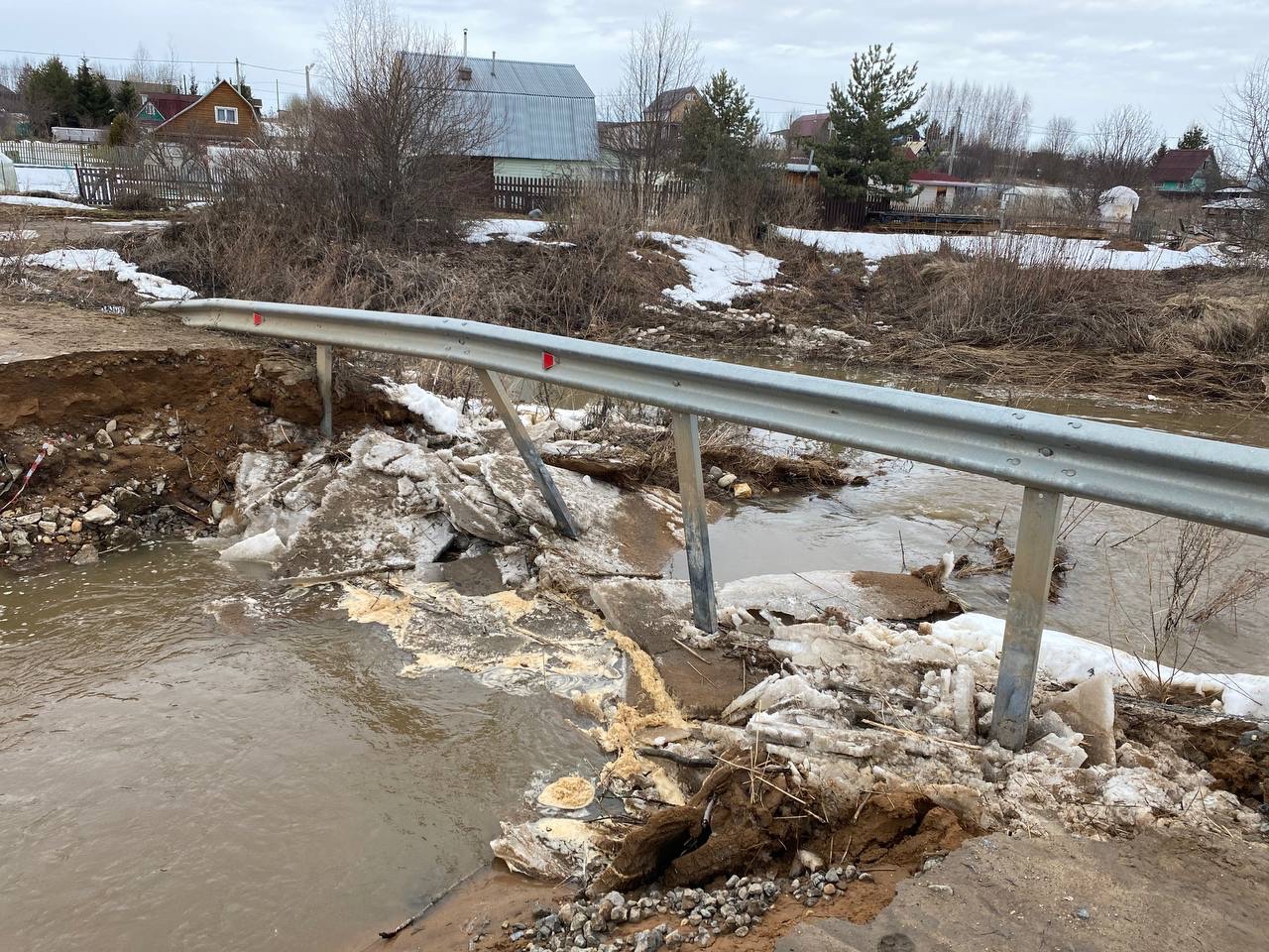 По имеющимся данным обрушение произошло вчера, 10 апреля, в вечернее время. На место происшествия незамедлительно выехал исполняющий обязанности прокурора Вологодского района Сергей Шашков. В настоящее время администрацией района для жителей населенного пункта организован альтернативный проезд в сторону деревни Бурцево, принимаются меры к организации ремонтно-восстановительных работ.