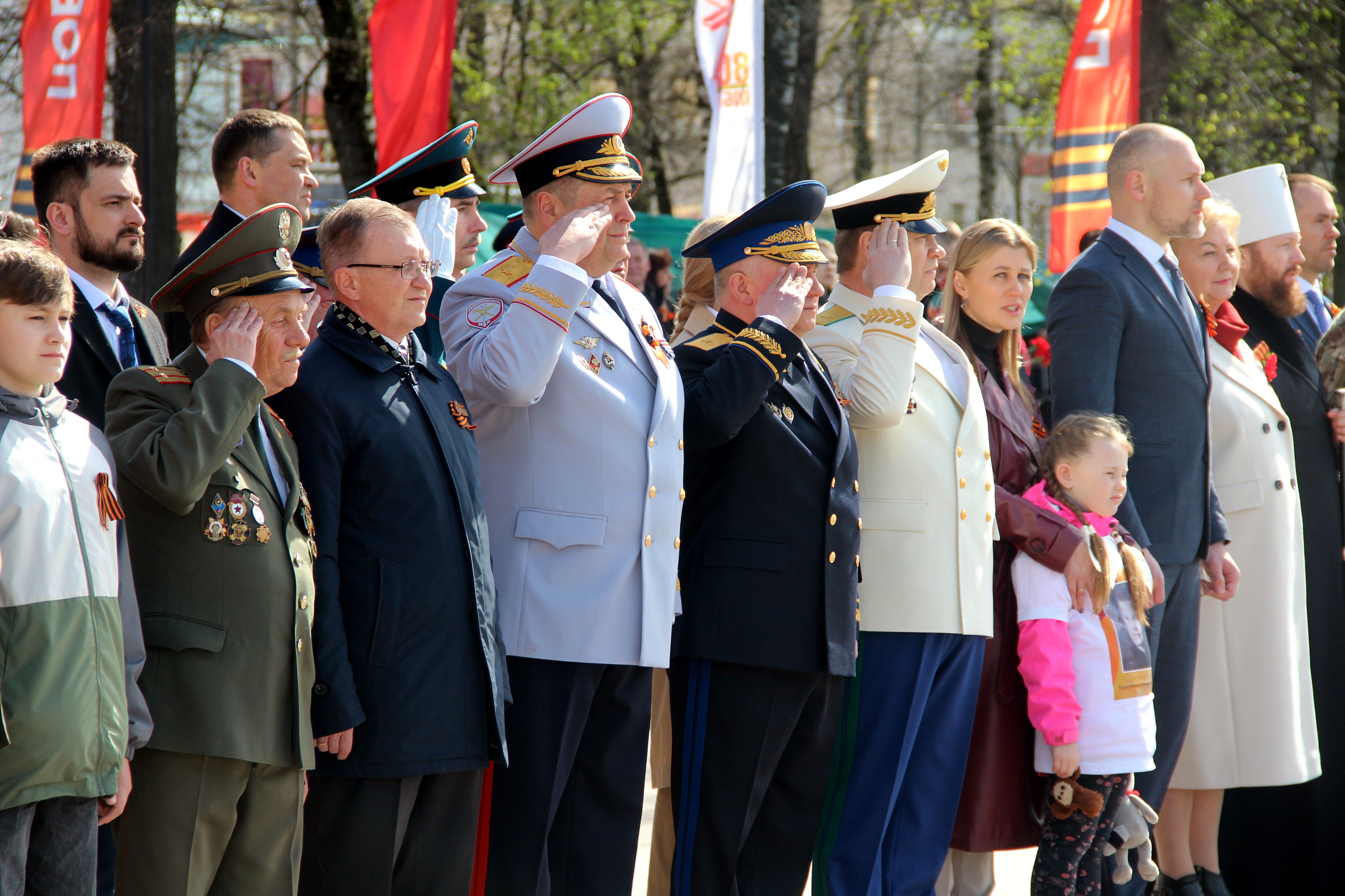 На площади Революции в г. Вологде собралось более тысячи зрителей. В рядах почетных участников – ветераны Великой Отечественной войны, труженики тыла, дети войны, участники специальной военной операции и члены их семей.